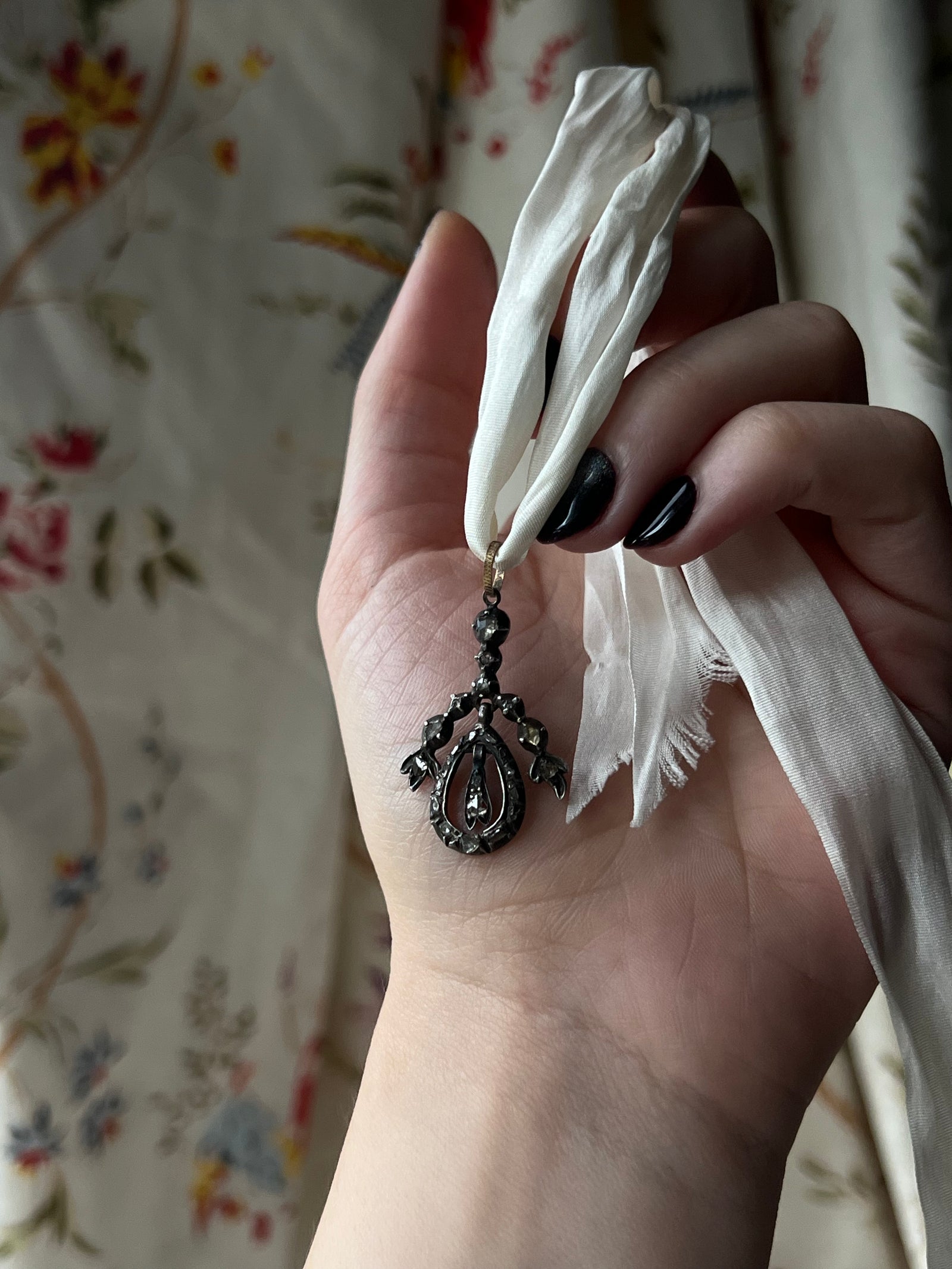 12ct and Silver Rose Cut Diamond Pendant *include white ribbon*