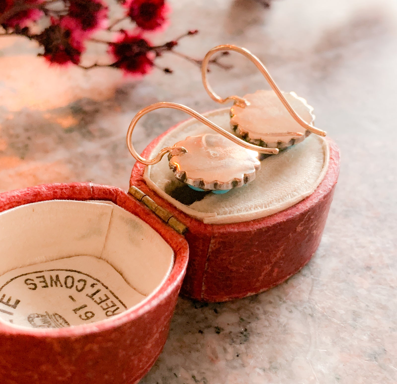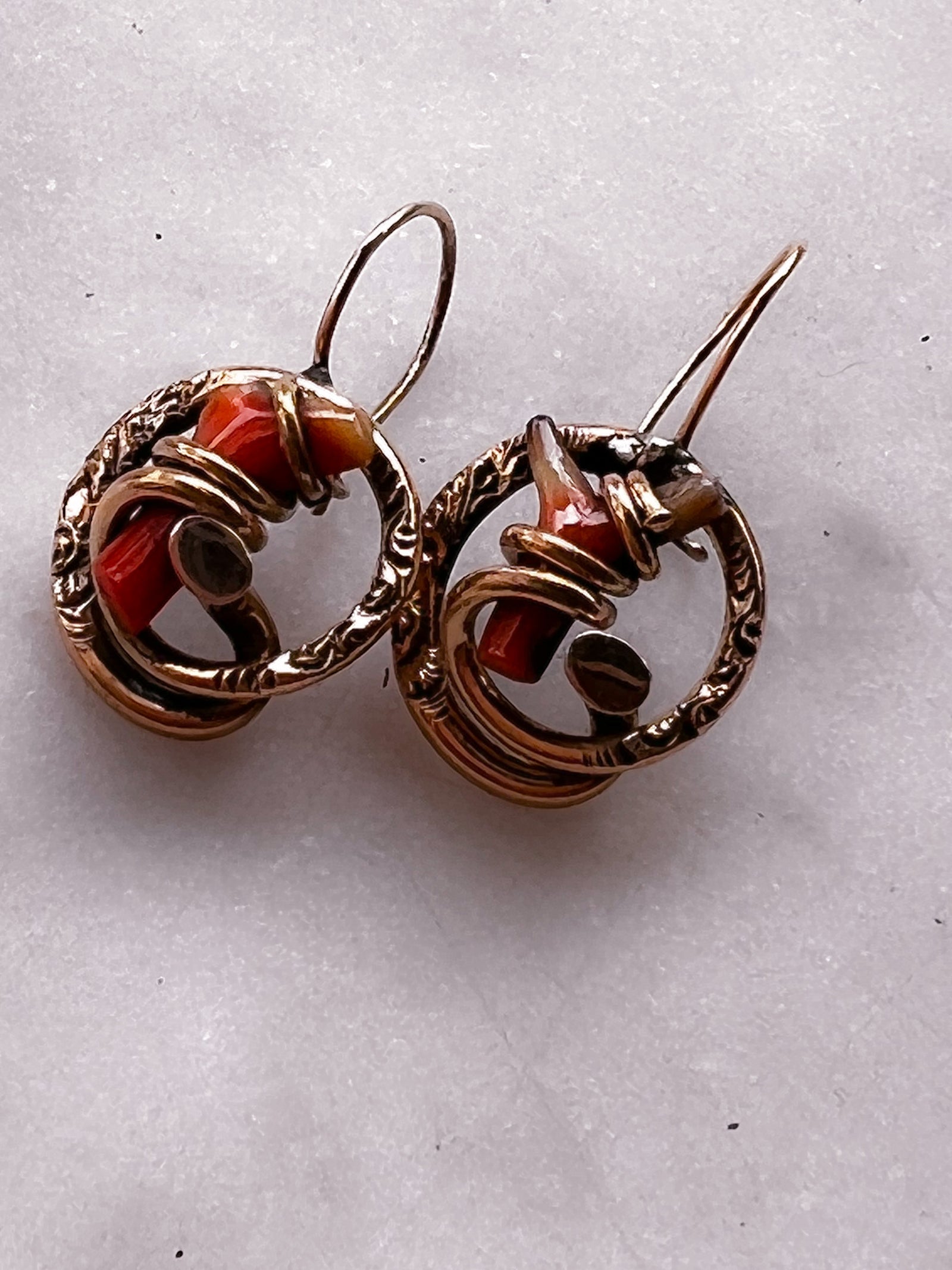 10k Victorian Coral Earrings with Love Knot Etched Wrap