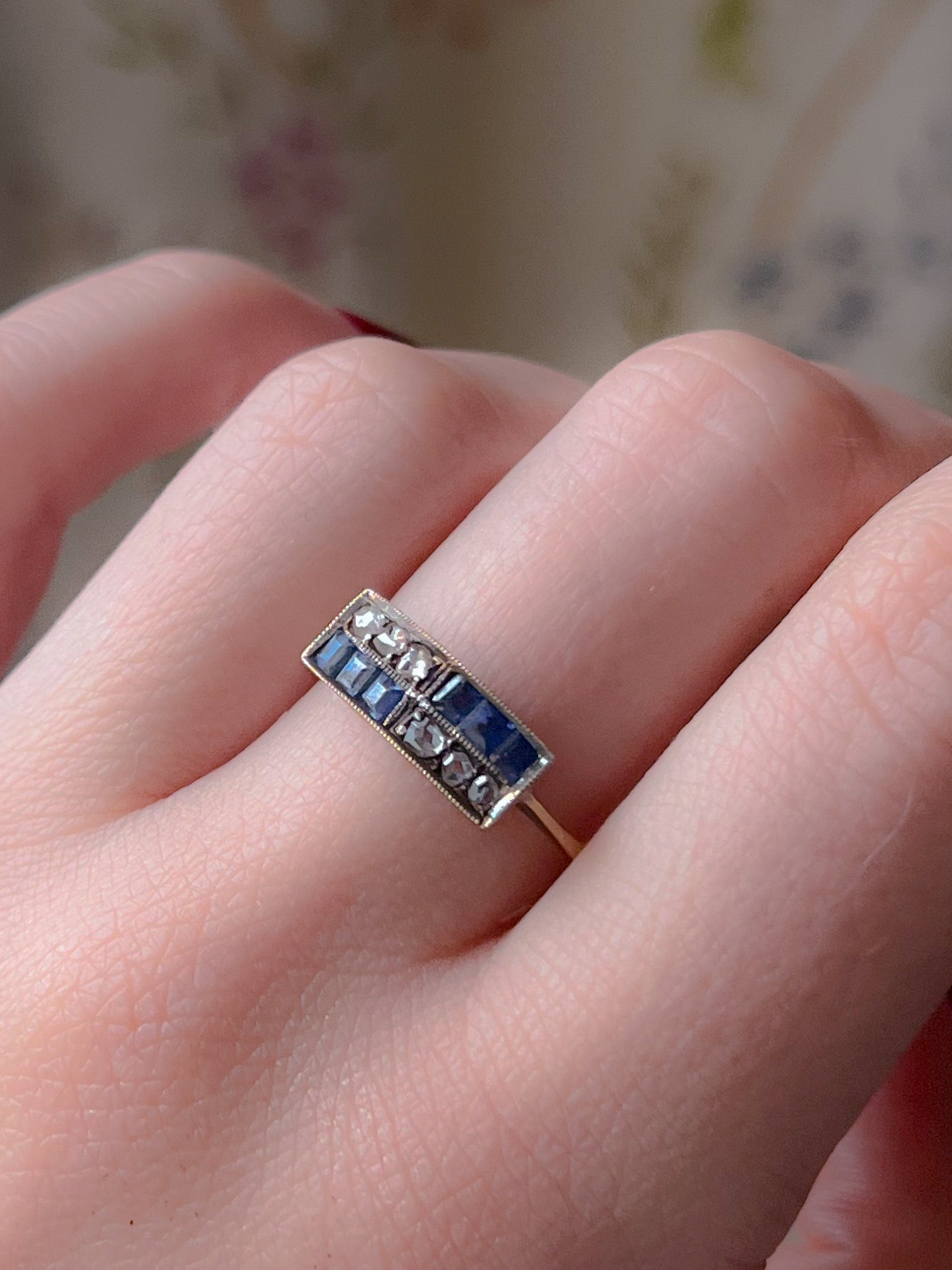 Victorian Sapphire + Rose Cut Diamond Band 18k