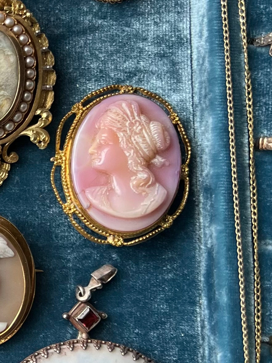 Victorian Pink Conch Shell Cameo Brooch in 14ct