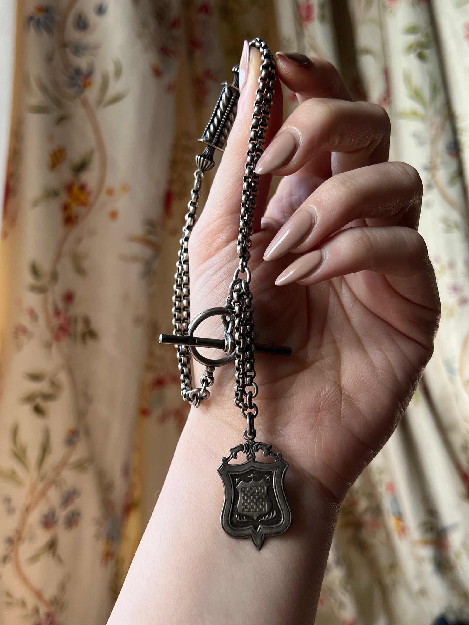 Victorian Sterling Silver Rolo Chain Renaissance Revival Details