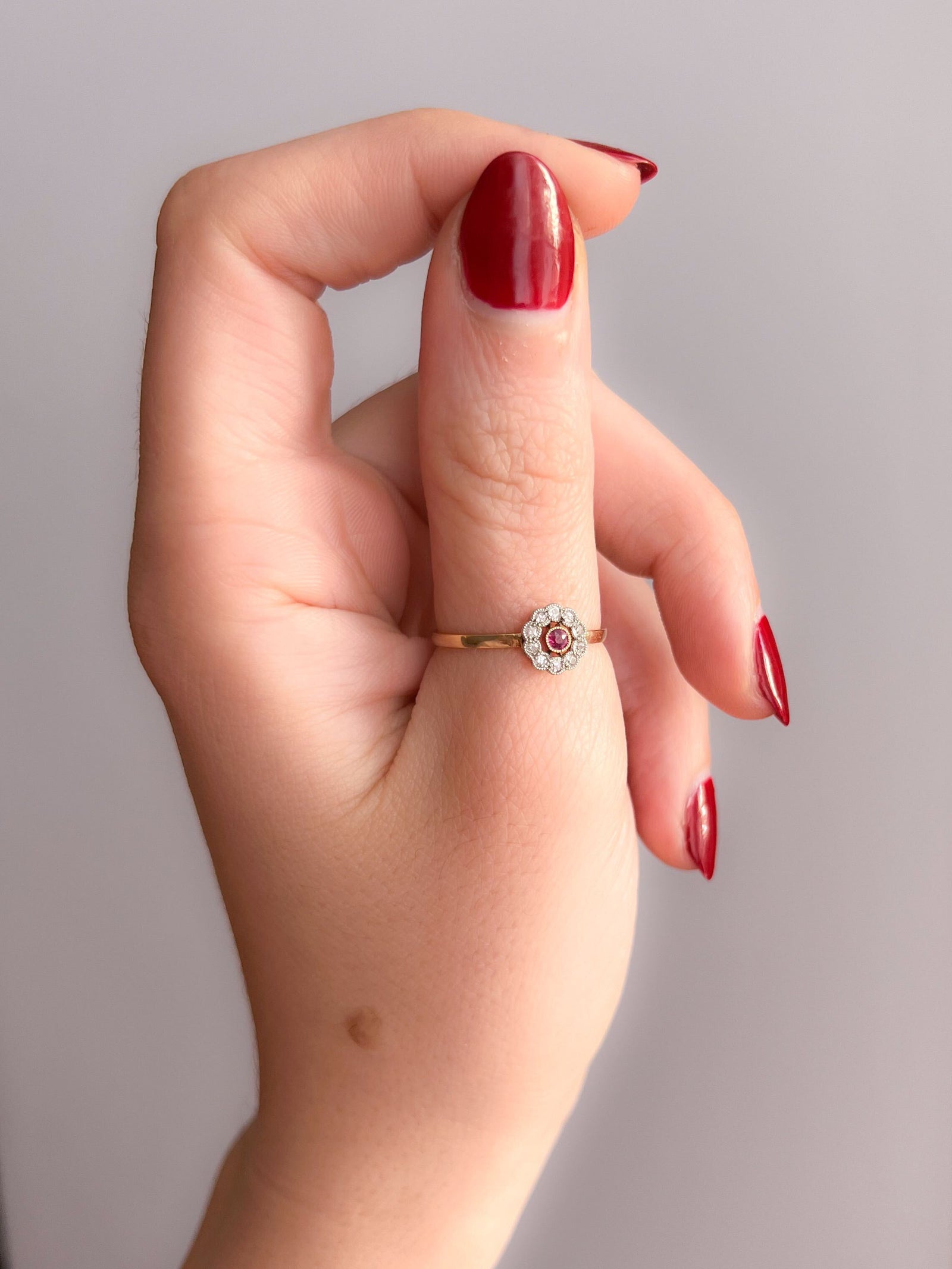 Victorian Ruby and Diamond 14k Daisy Ring