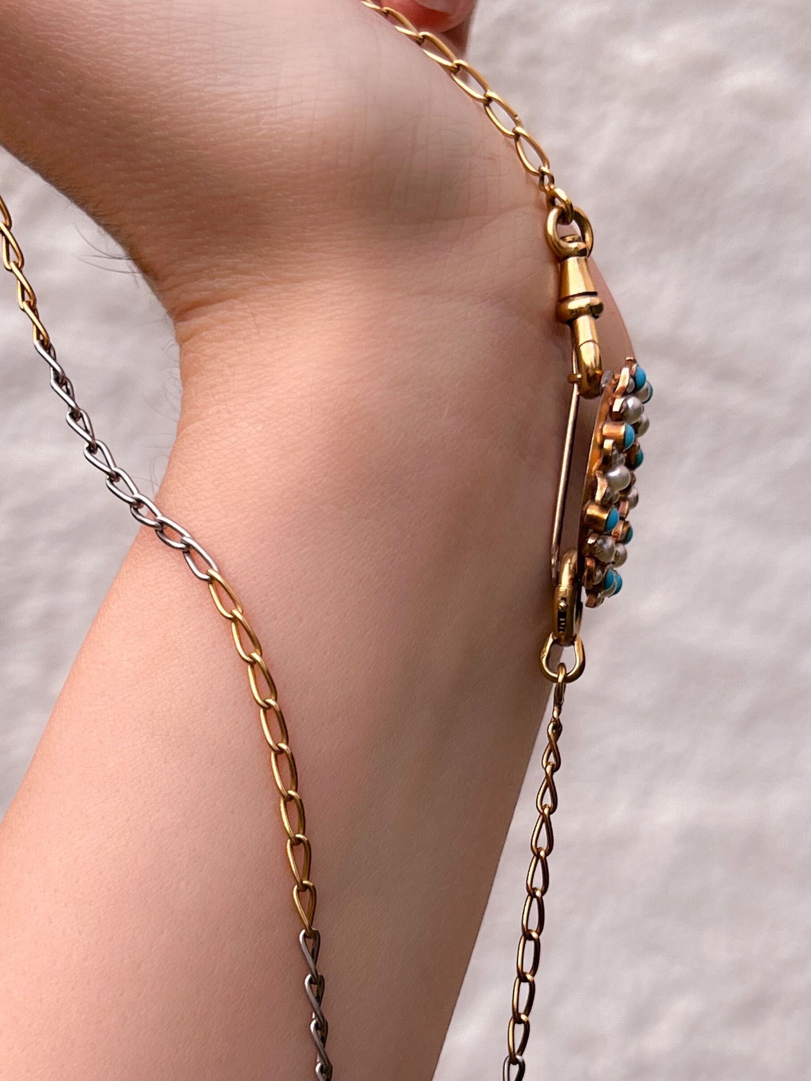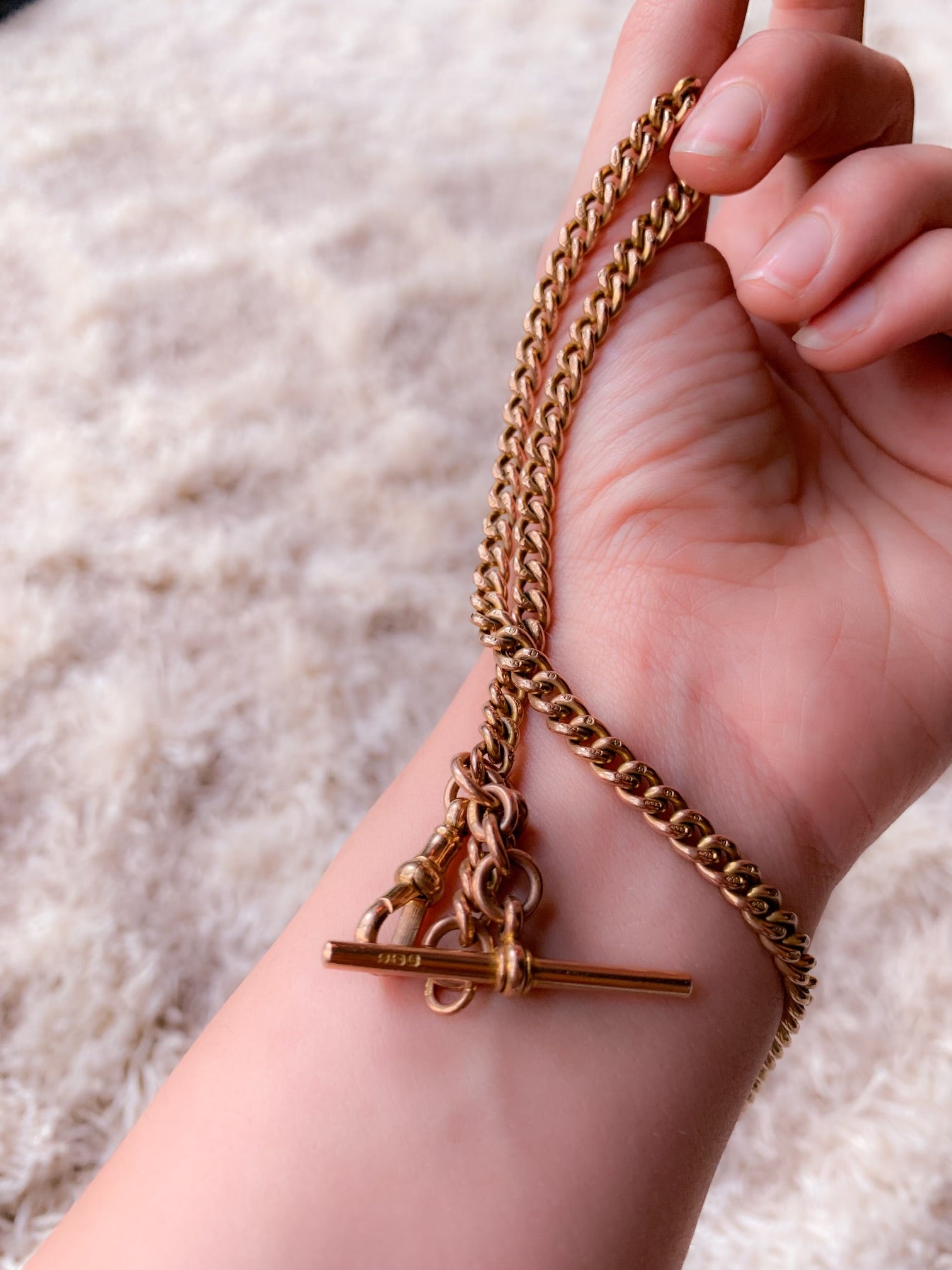 Victorian Cuban Link T-Bar Chain in 9k with Two Dog Clips