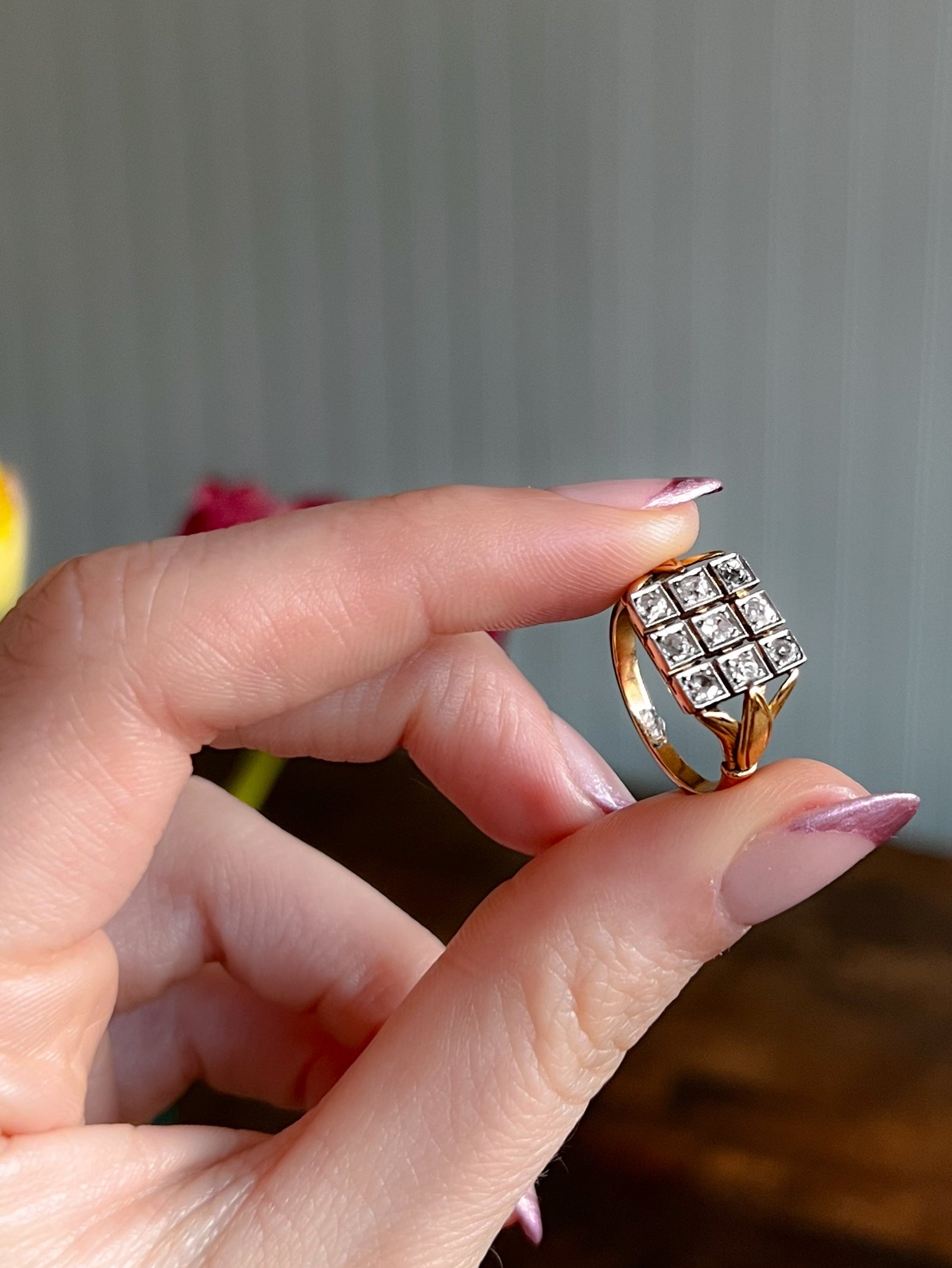 Victorian Old-Mine Cut Diamond Cluster Ring