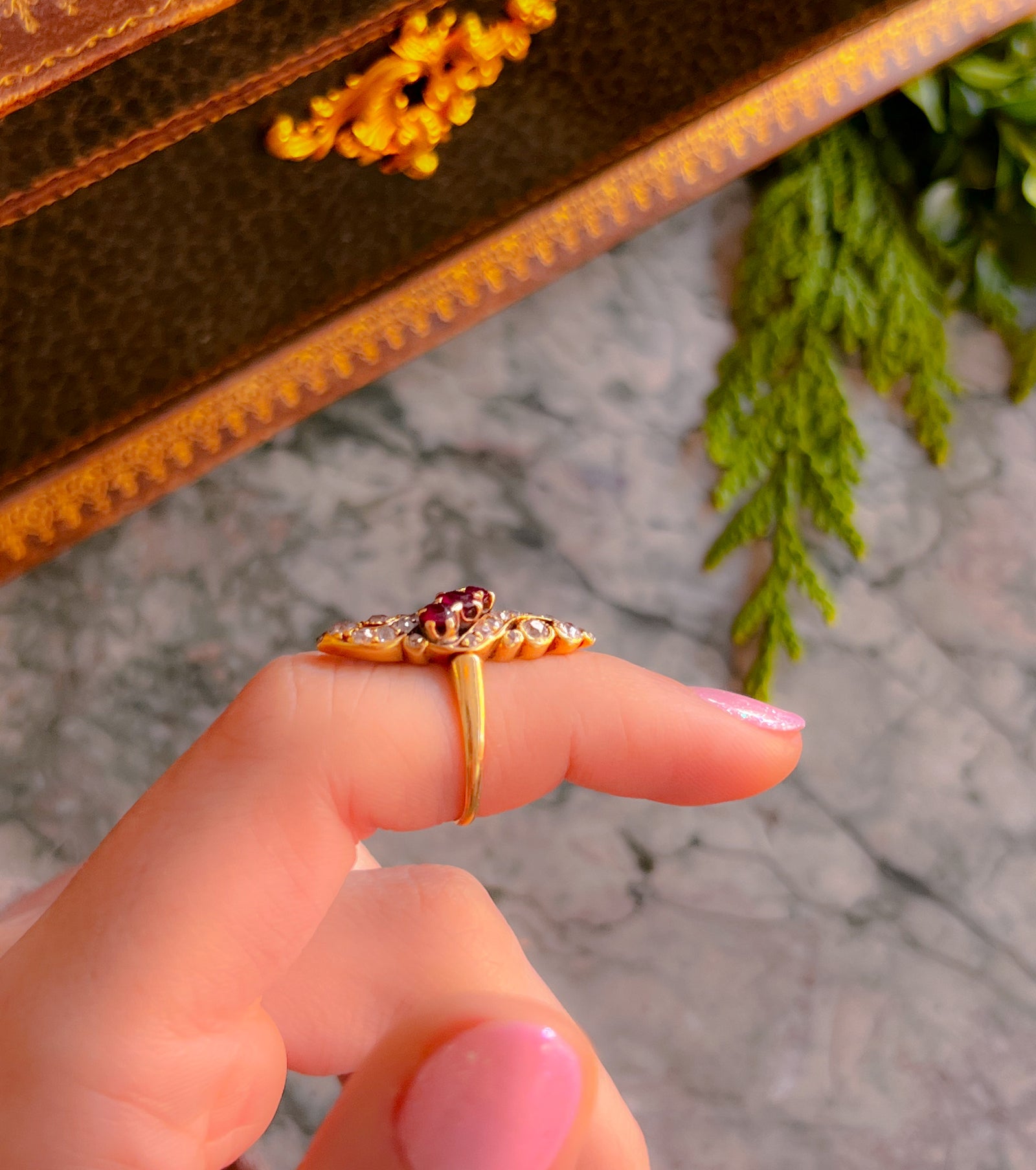 Victorian Diamond and Ruby Navette Ring