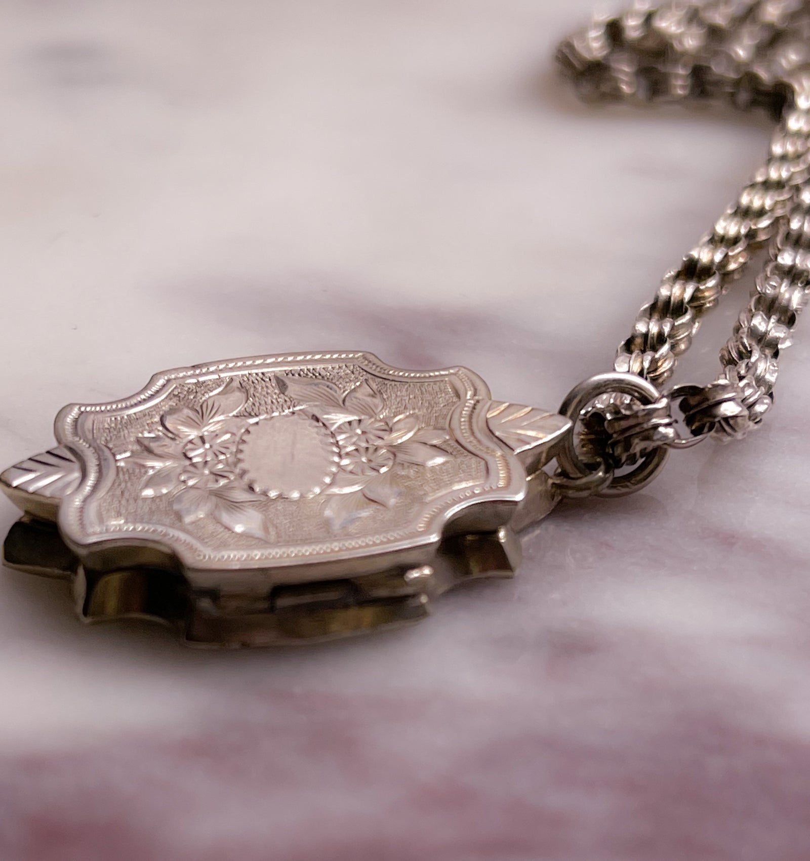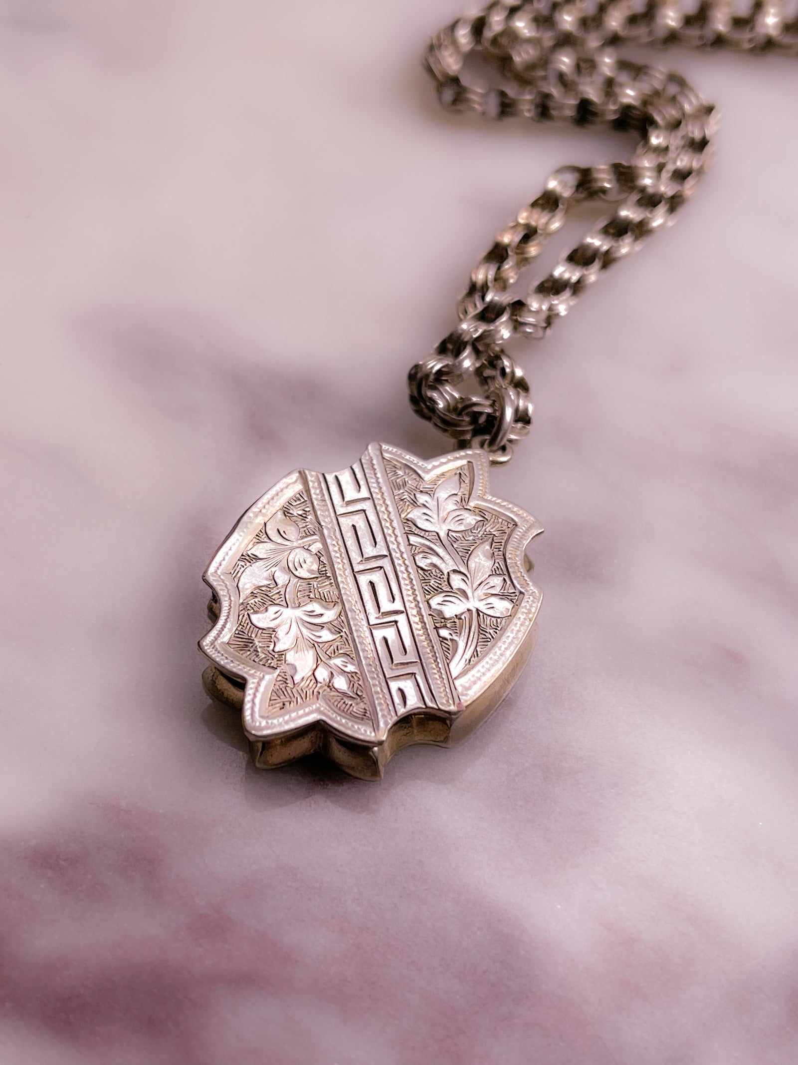 Victorian Sterling Silver Rollo Chain with Special Aesthetic Movement Locket
