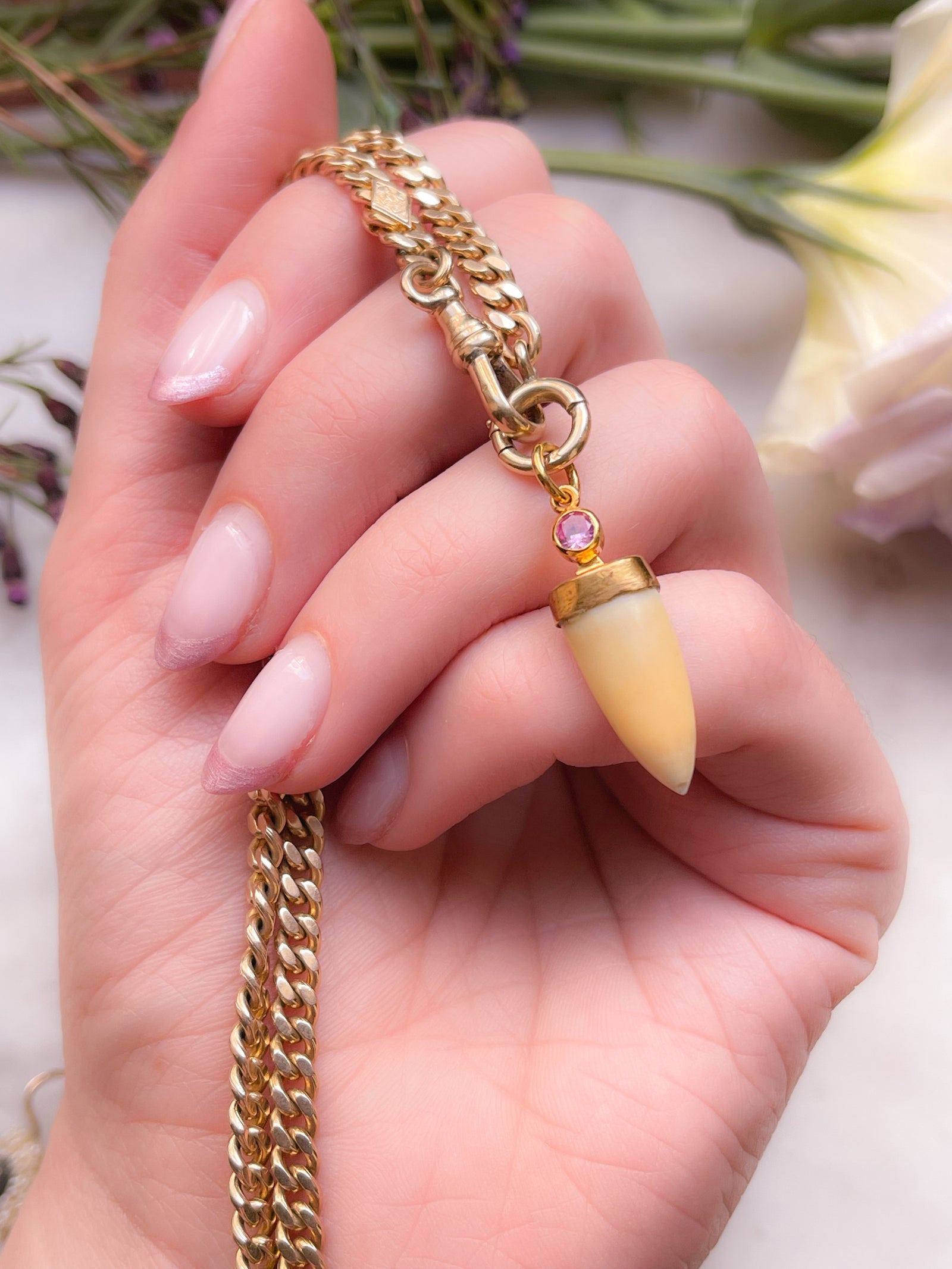 Victorian Tiger Fang with Pink Sapphire Bale Fitting