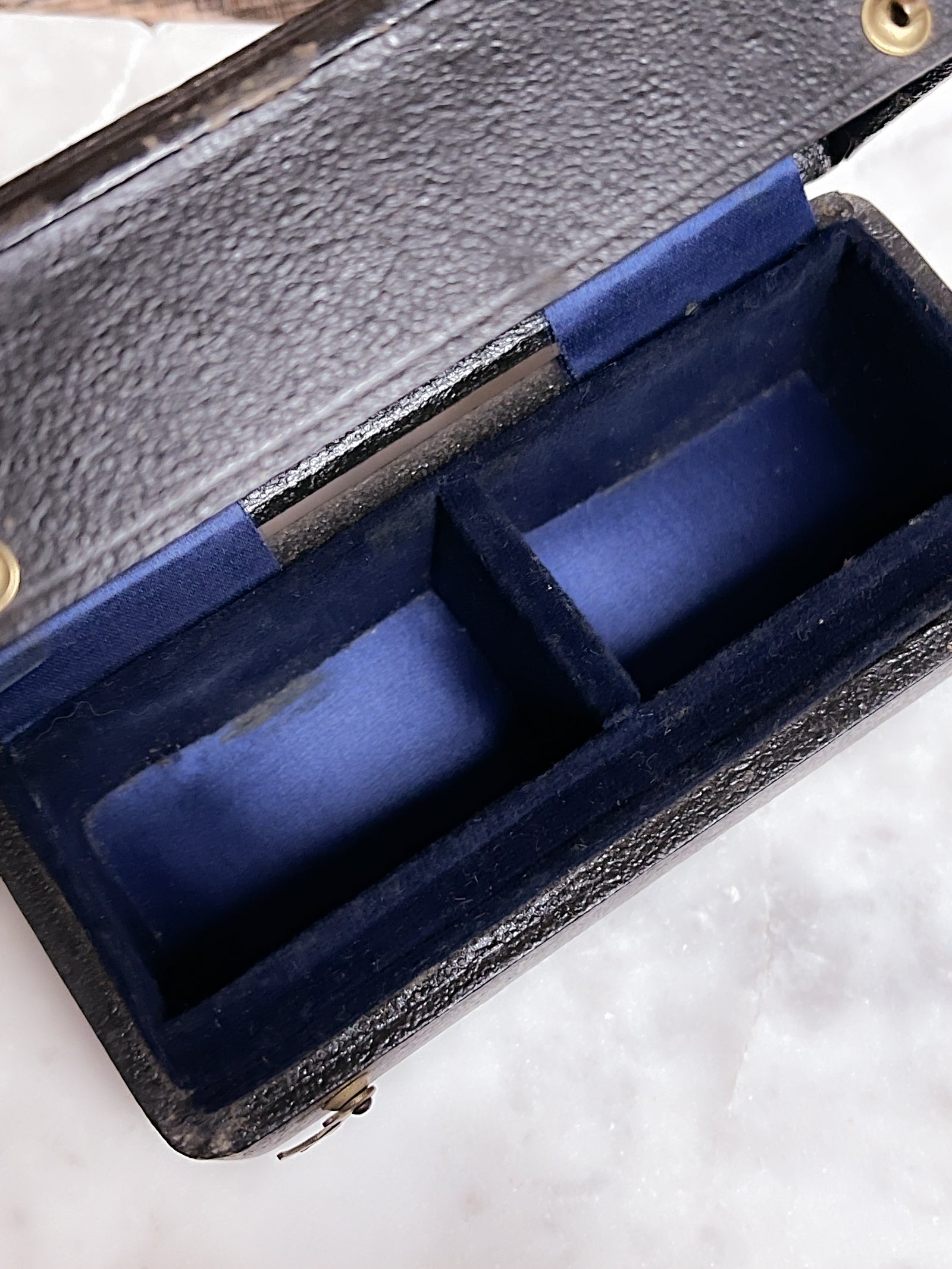 Victorian Dome Top Leather & Blue Velvet Jewel Box