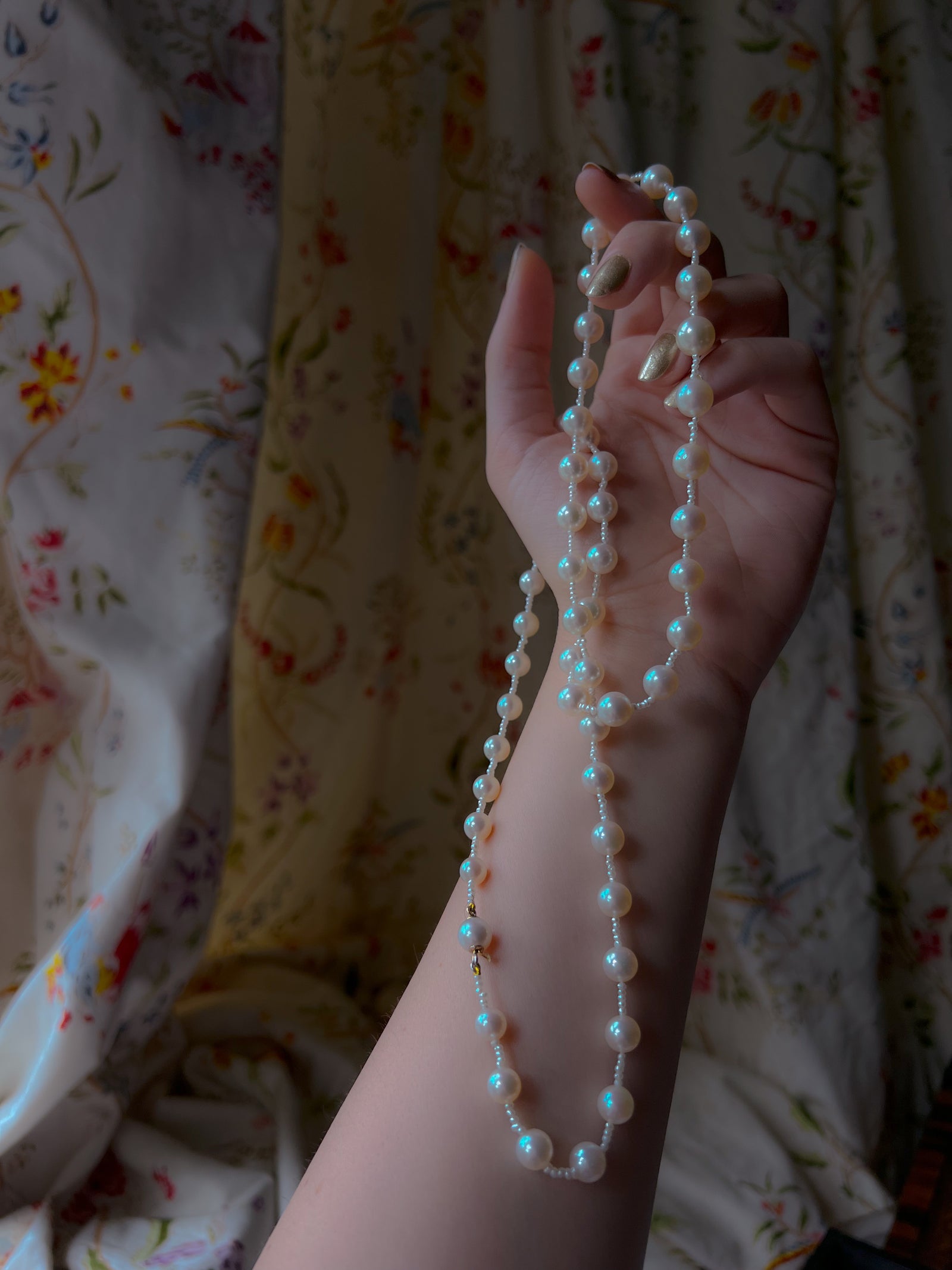 Vintage "Constellation" Pearl Necklace with Seed Pearl Spacing