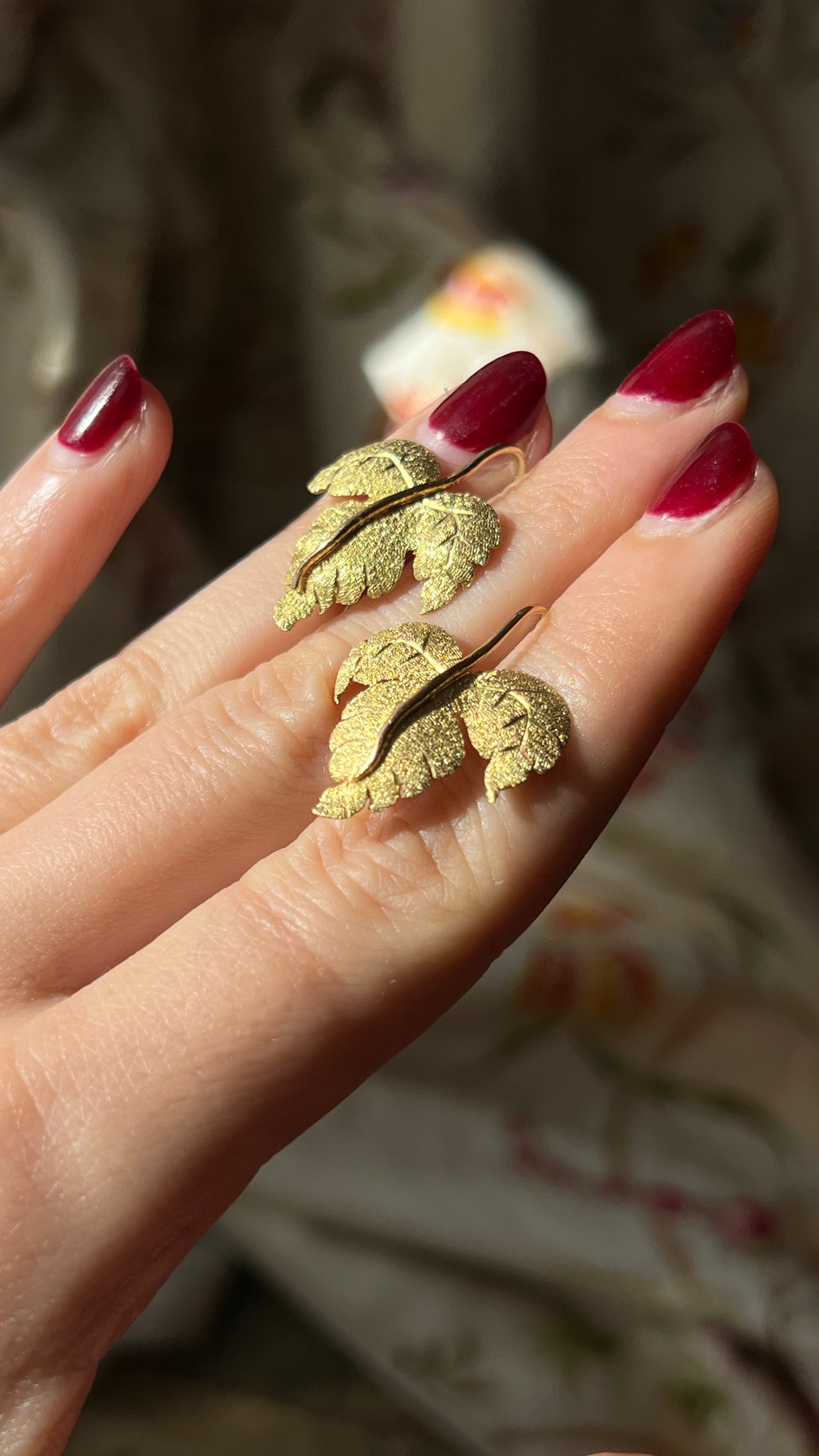 Wonderful Pair of 14ct Leaf Earrings