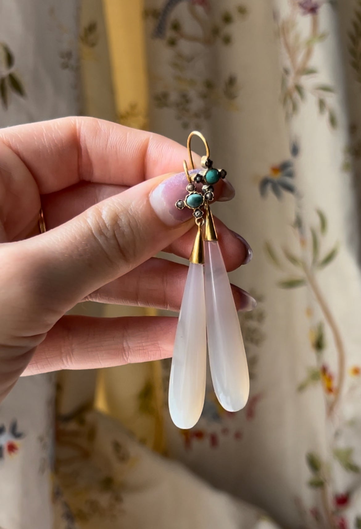 Wonderful Pair of Georgian Chalcedony Earrings in 12ct