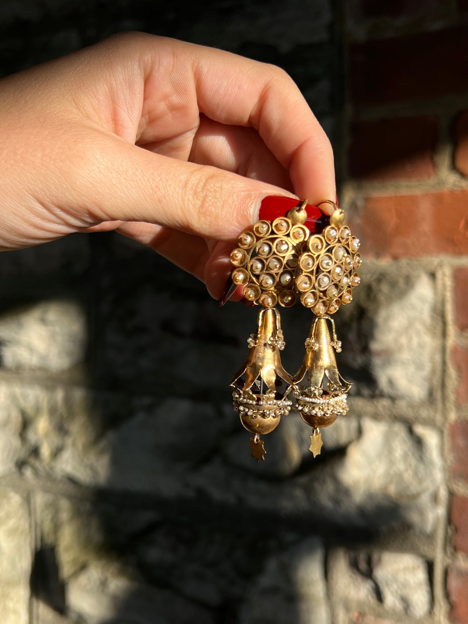 Wonderful Pair of Iberian Applied Pearl Earrings Circa 1825