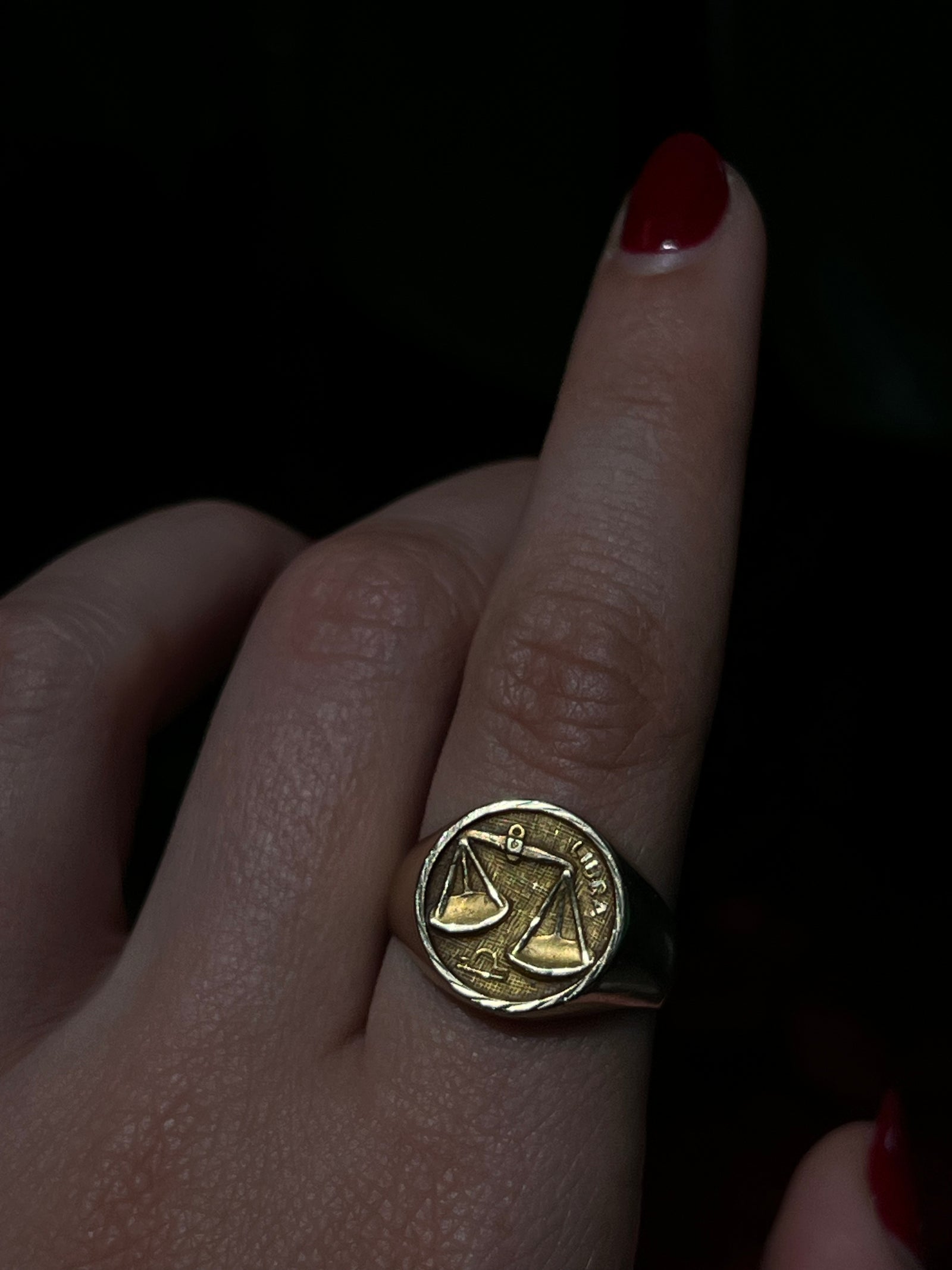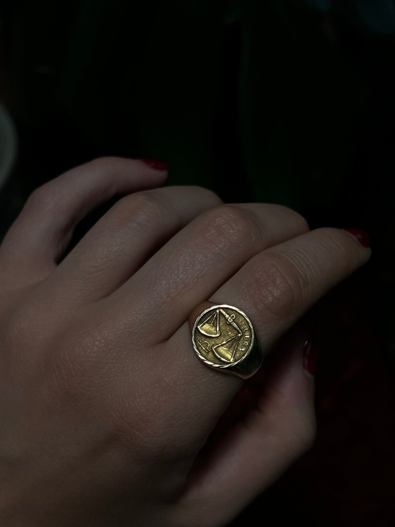 Vintage 14ct Zodiac Libra Signet Ring