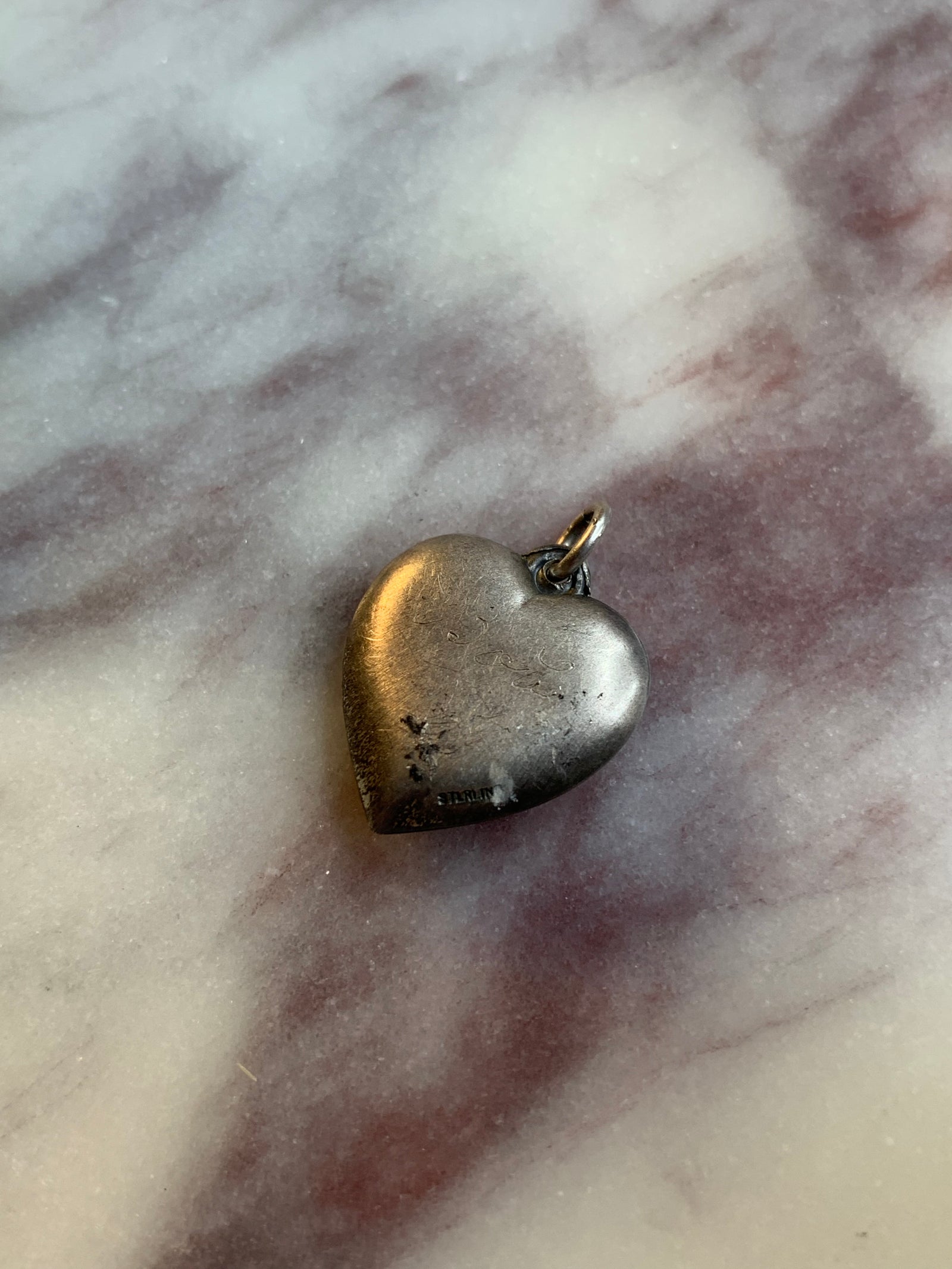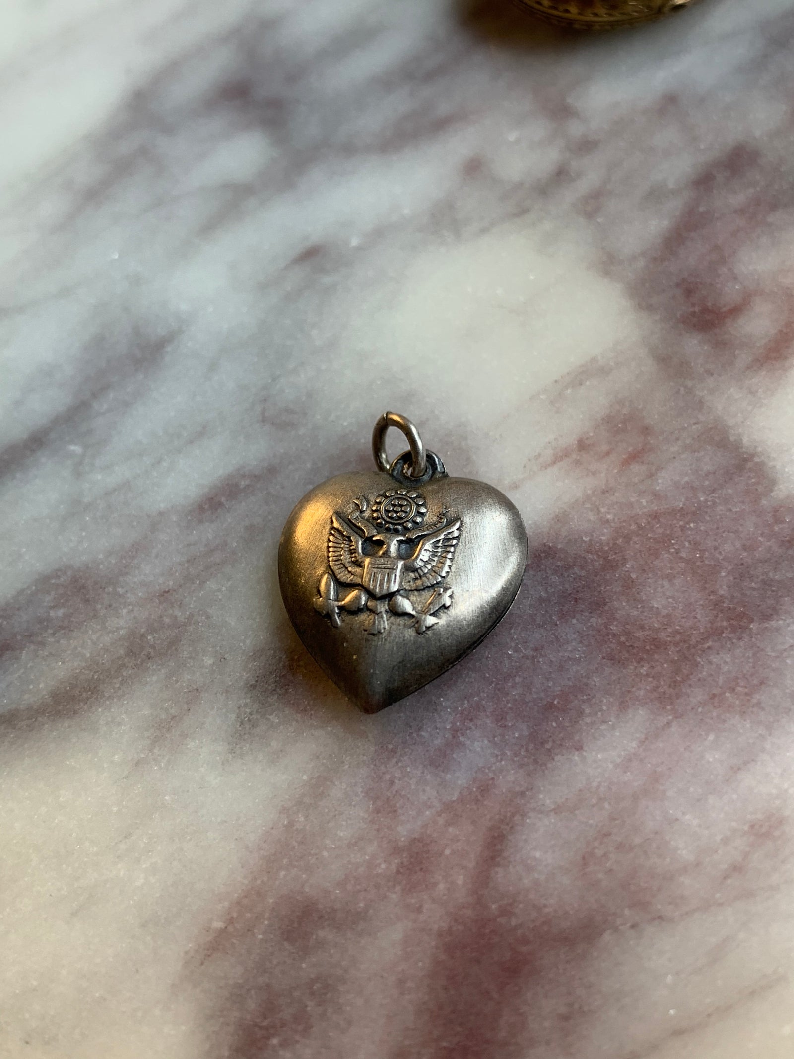 Vintage Eagle Embossed Sterling Heart Charm