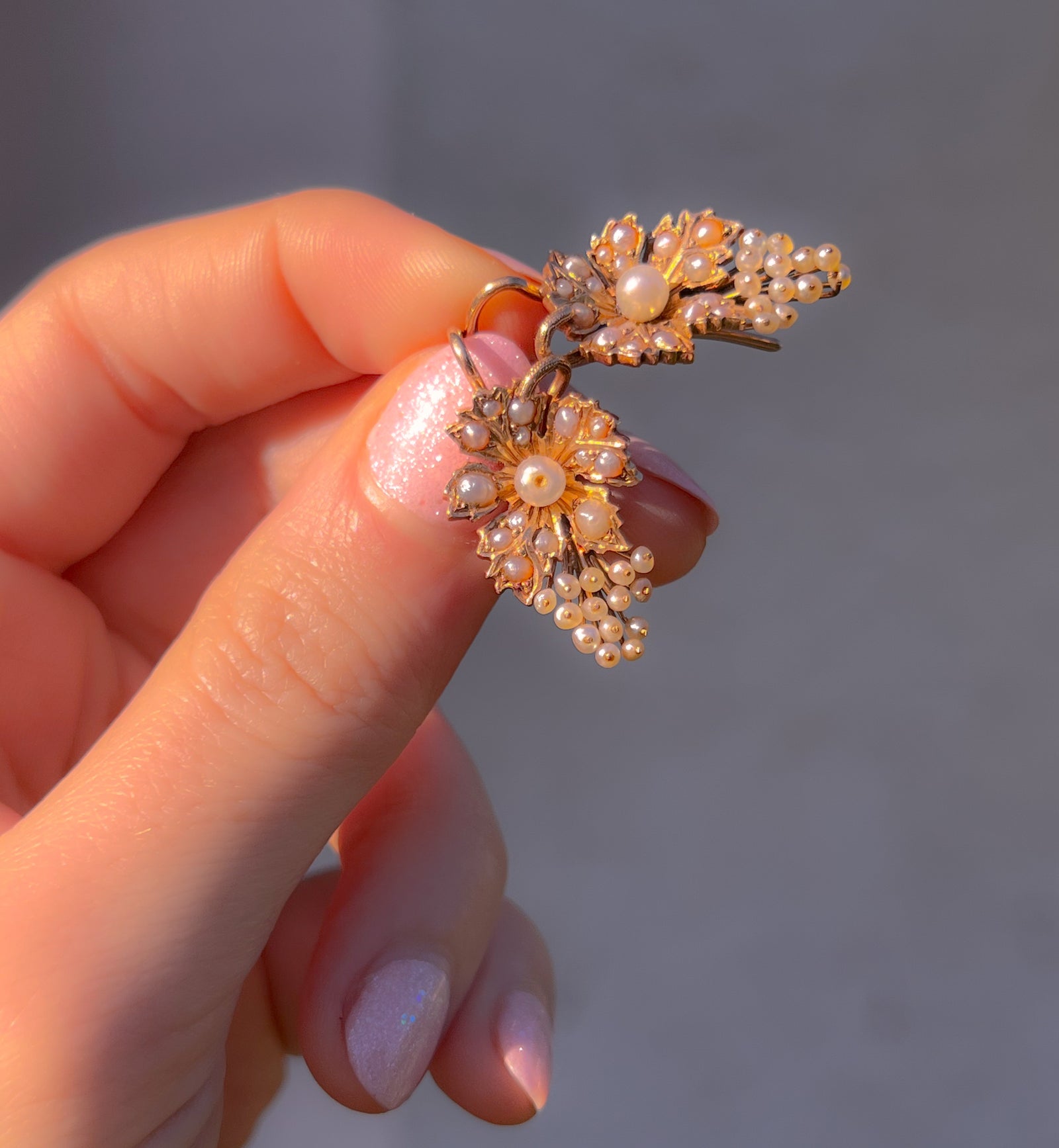 Wonderful Mid 19th C European Pearl and Vine Earrings