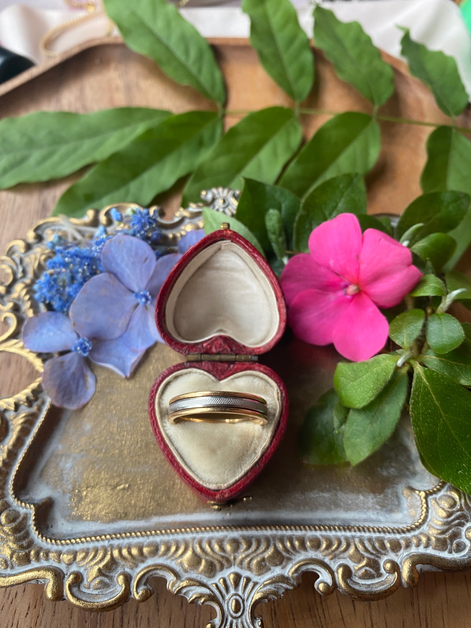 Vintage American Yellow Gold Wedding Band with Spinning White Gold Center