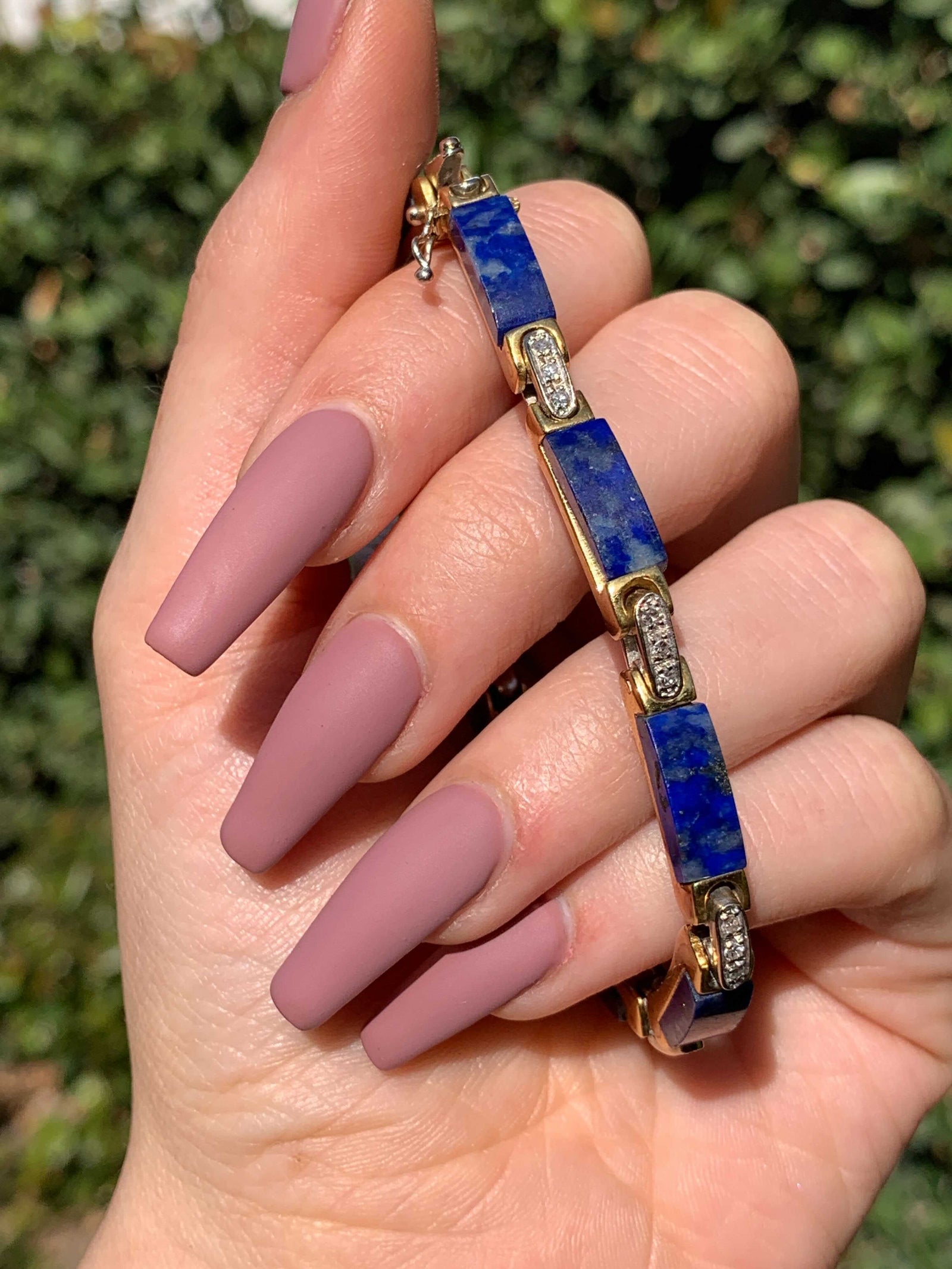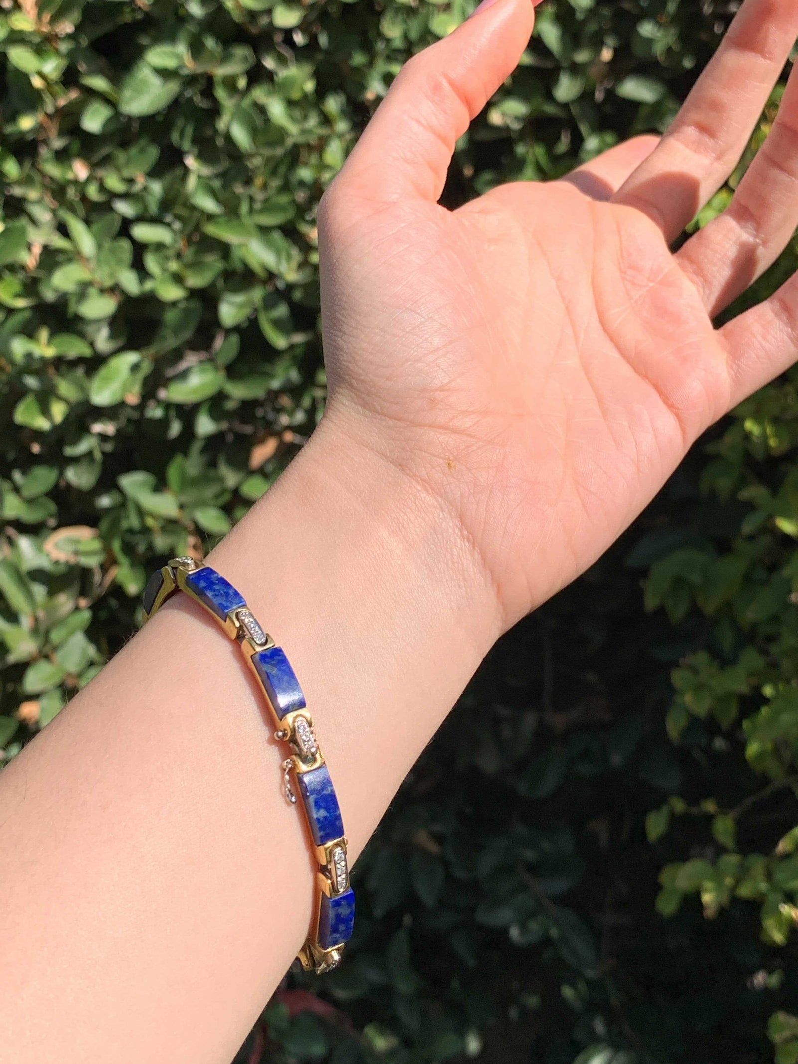 Vintage 1970’s Diamond-Studded Lapis Bracelet in 14k