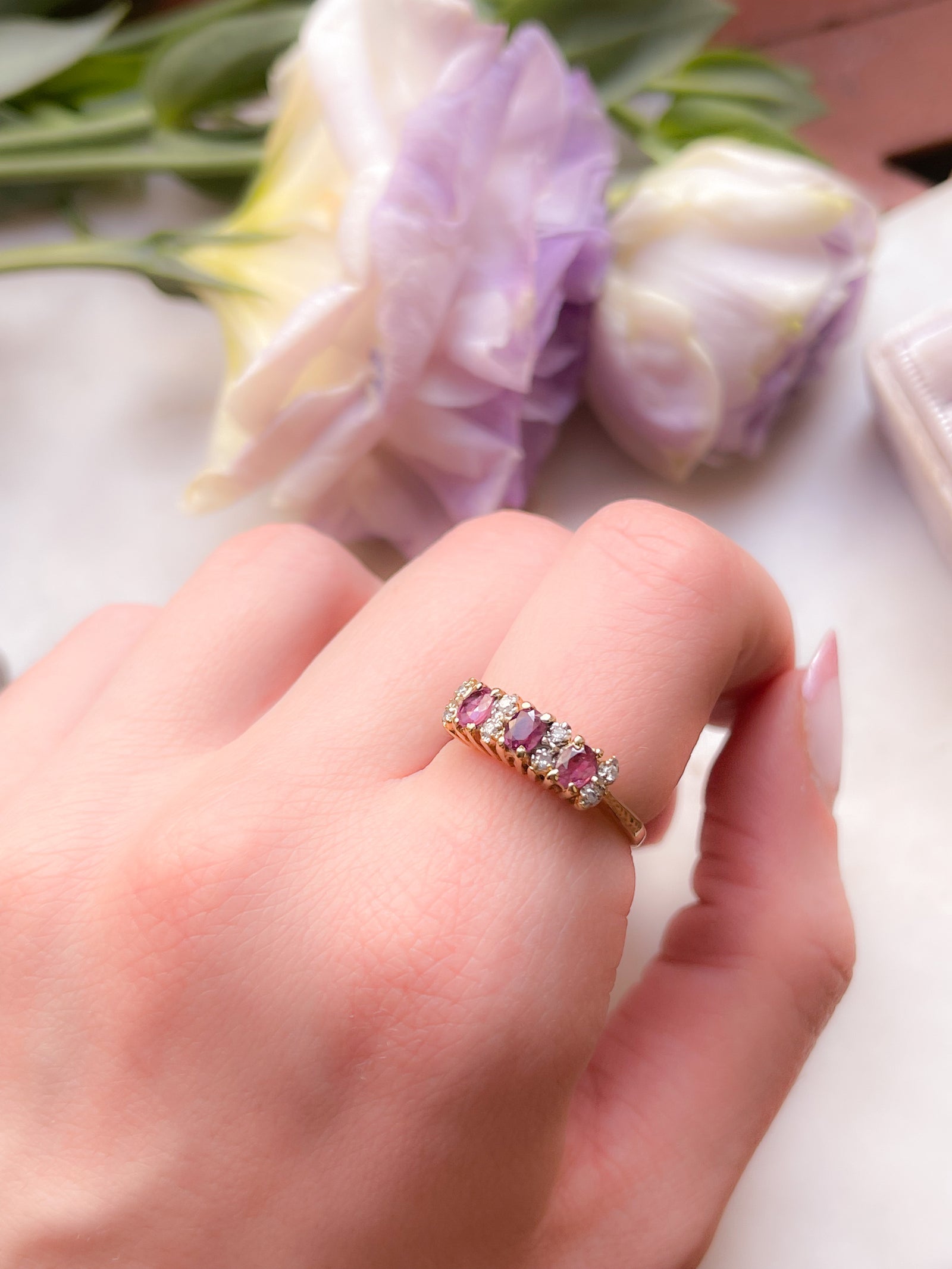 Vintage Diamond and Garnet Ring in 9ct