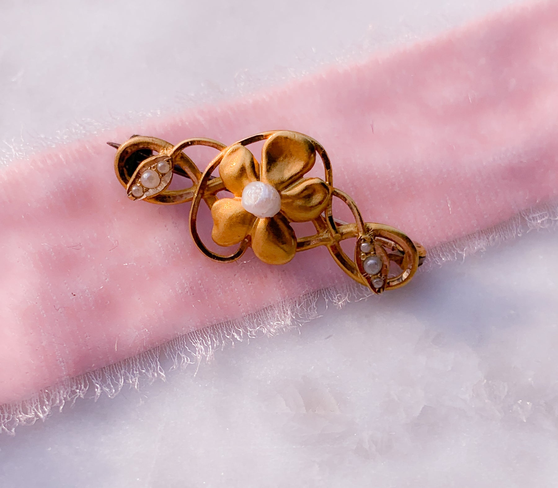 Swirling Art Nouveau Pearl brooch Circa 1910