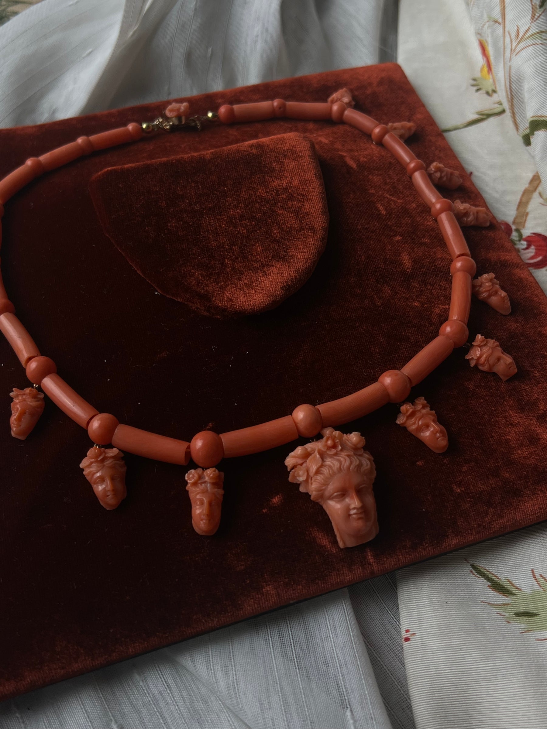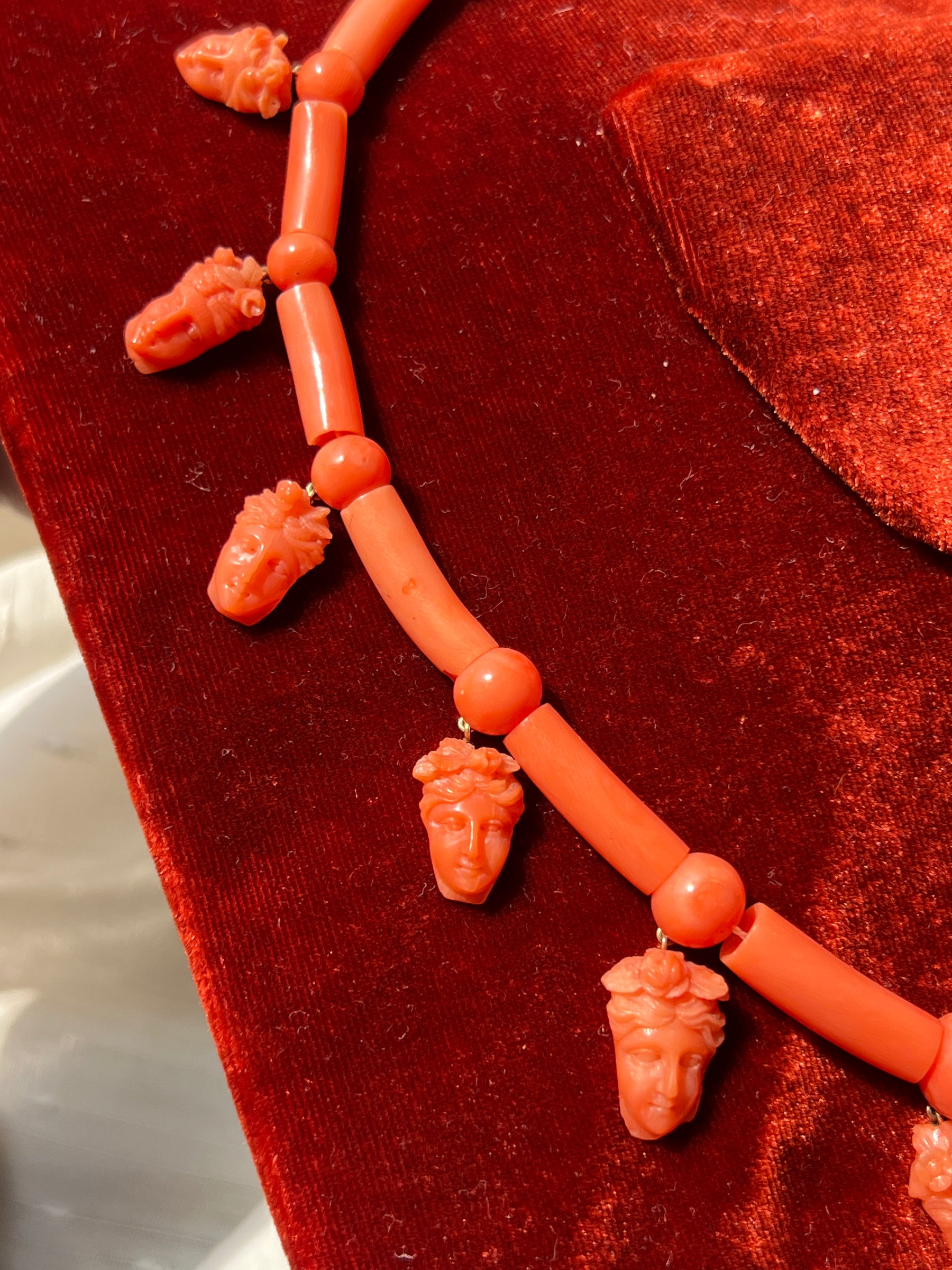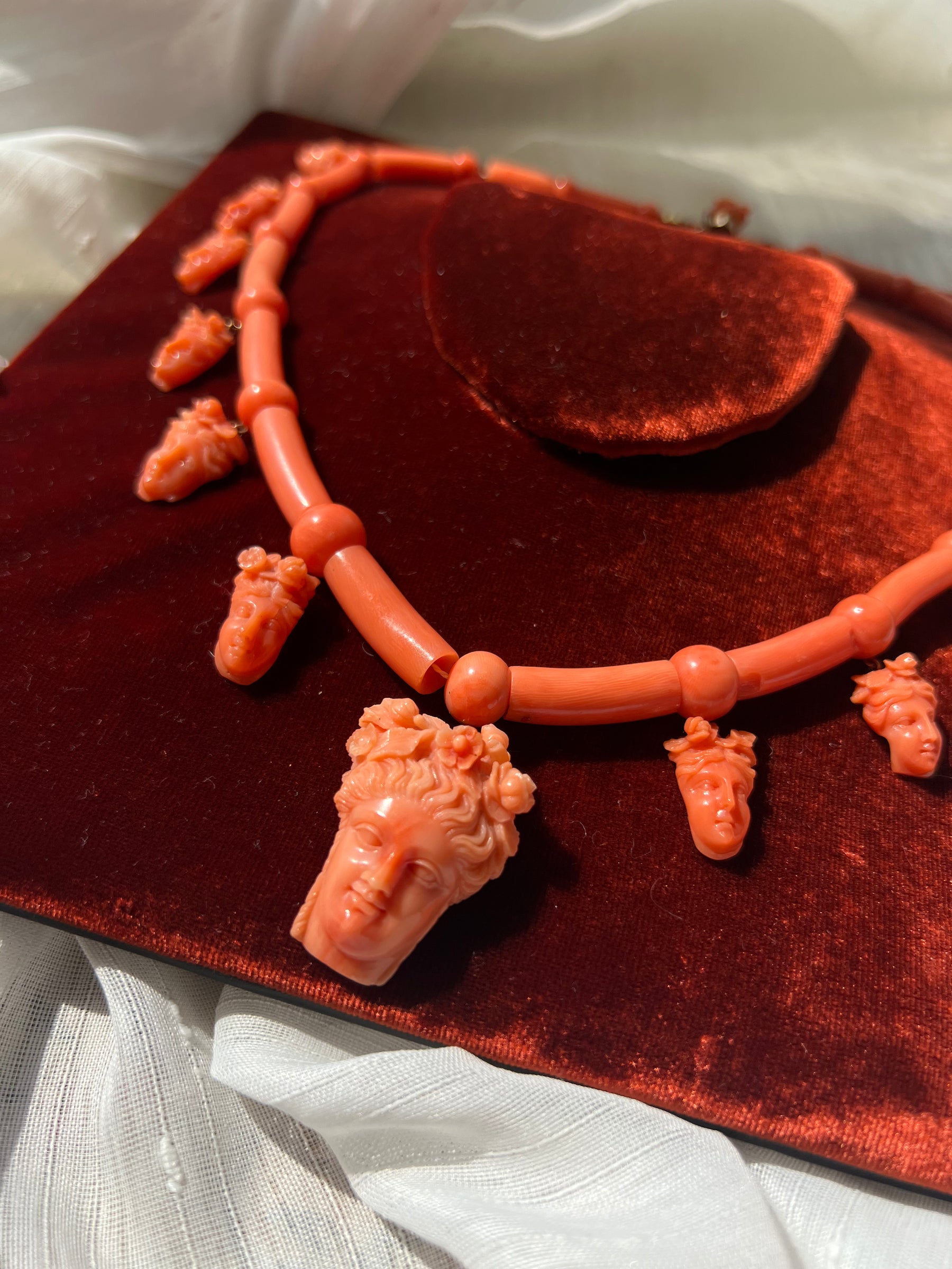 With its origin in Sicily, this necklace was most likely an artifact of the Grand Tour era. Souvenirs of coral jewelry were a popular choice for Victorian travelers, as they were not only protective talismans, but a symbol of one’s worldliness. A truly museum-quality adornment perfect for any connoisseur’s collection!