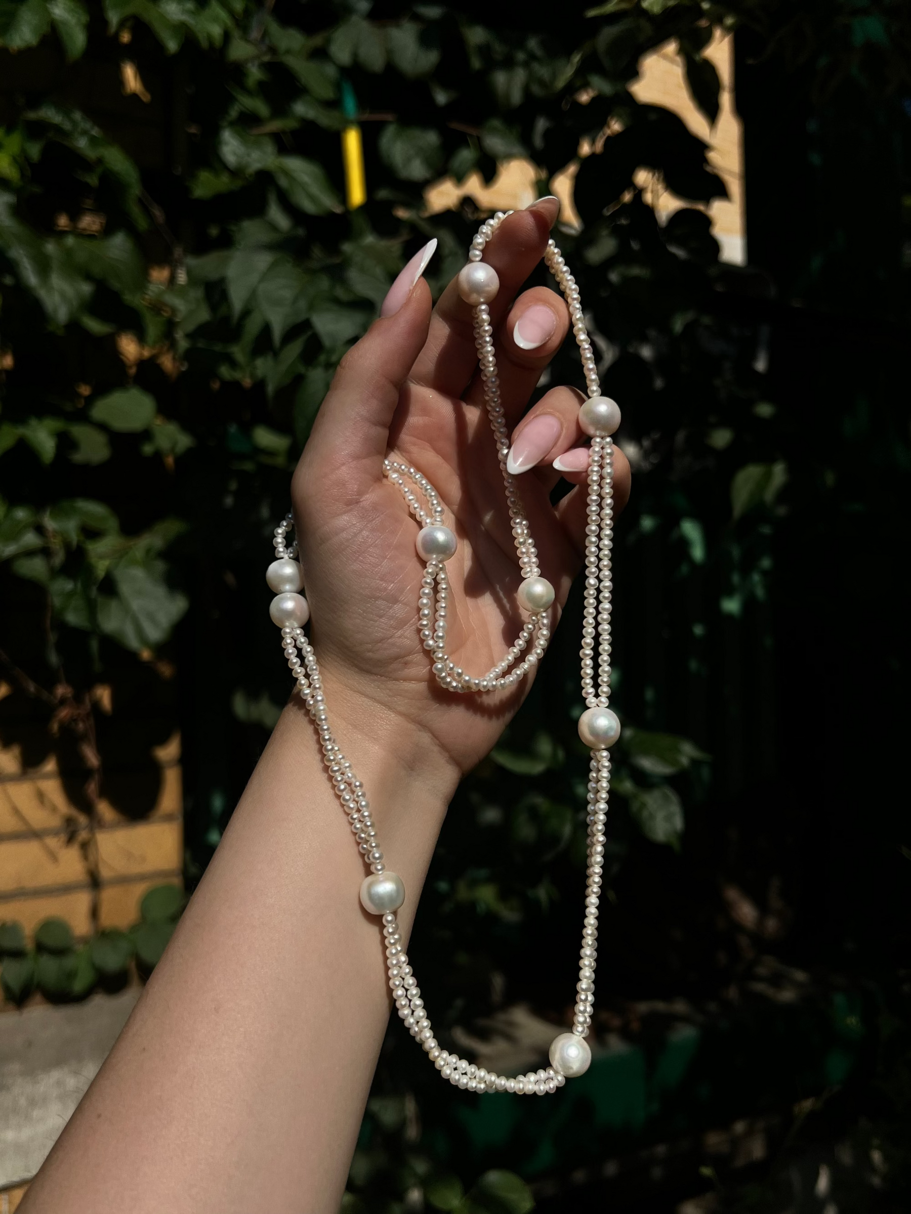 Pearl Size: Images 1-6 depict the classic 9mm pearl size, images 7-8 show the 11mm pearl with the 3mm supporting pearl, the last image shows the 11mm central pearl with 4mm supporting pearls.