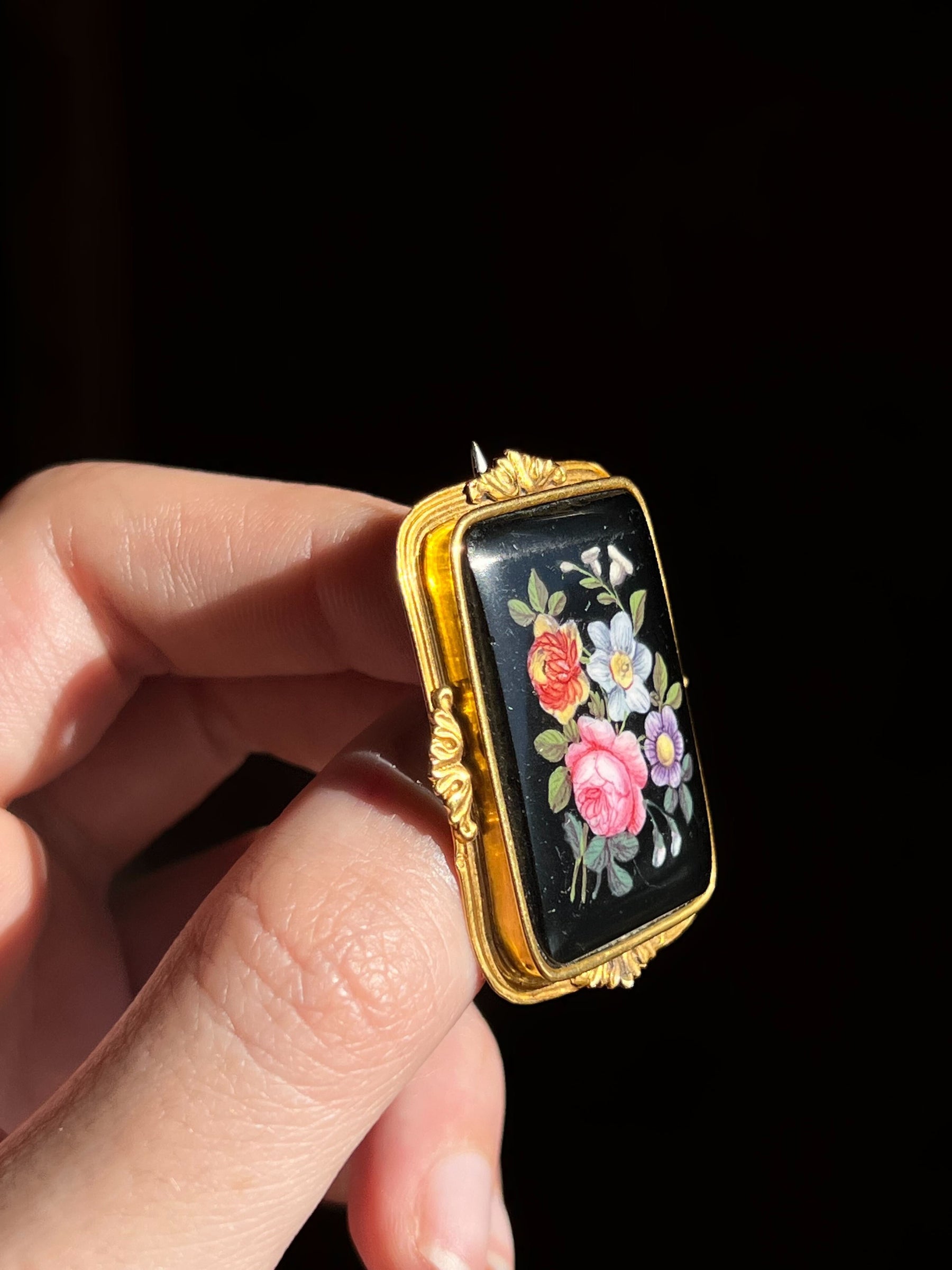 This piece is remarkable- to balance and properly weight, an onyx slab was added at the back by a later jeweler.