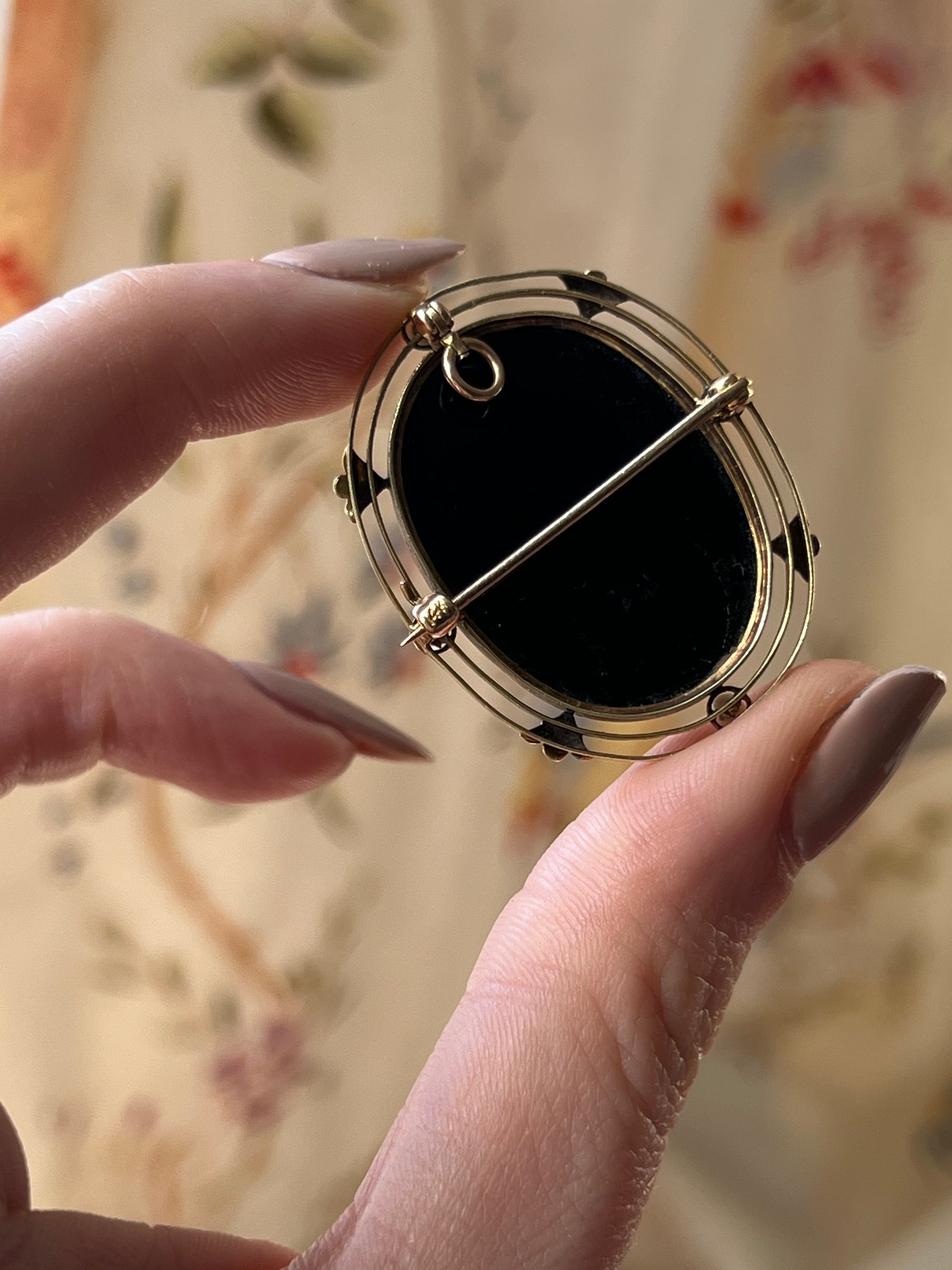 Gorgeous Victorian Onyx Cameo Brooch in 14ct