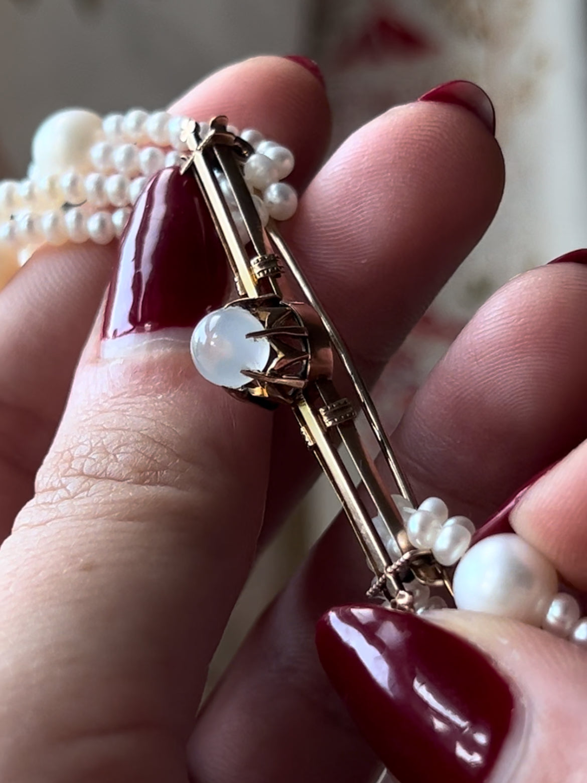 Rare 14ct American Aesthetic Movement Moonstone Bar Brooch