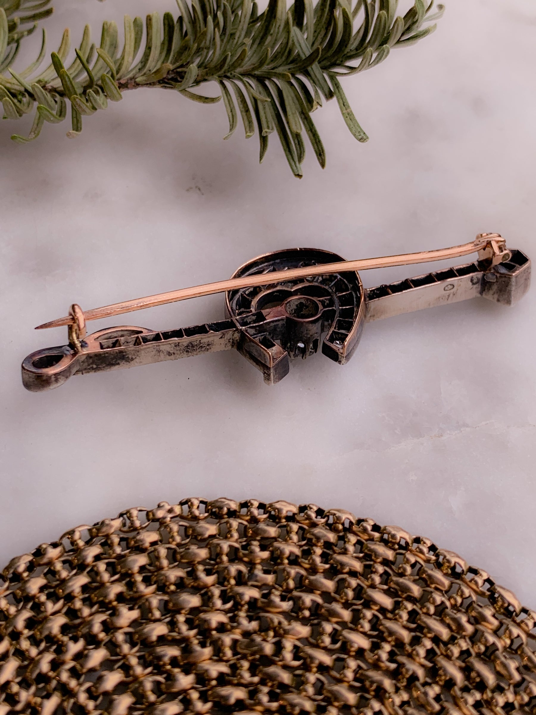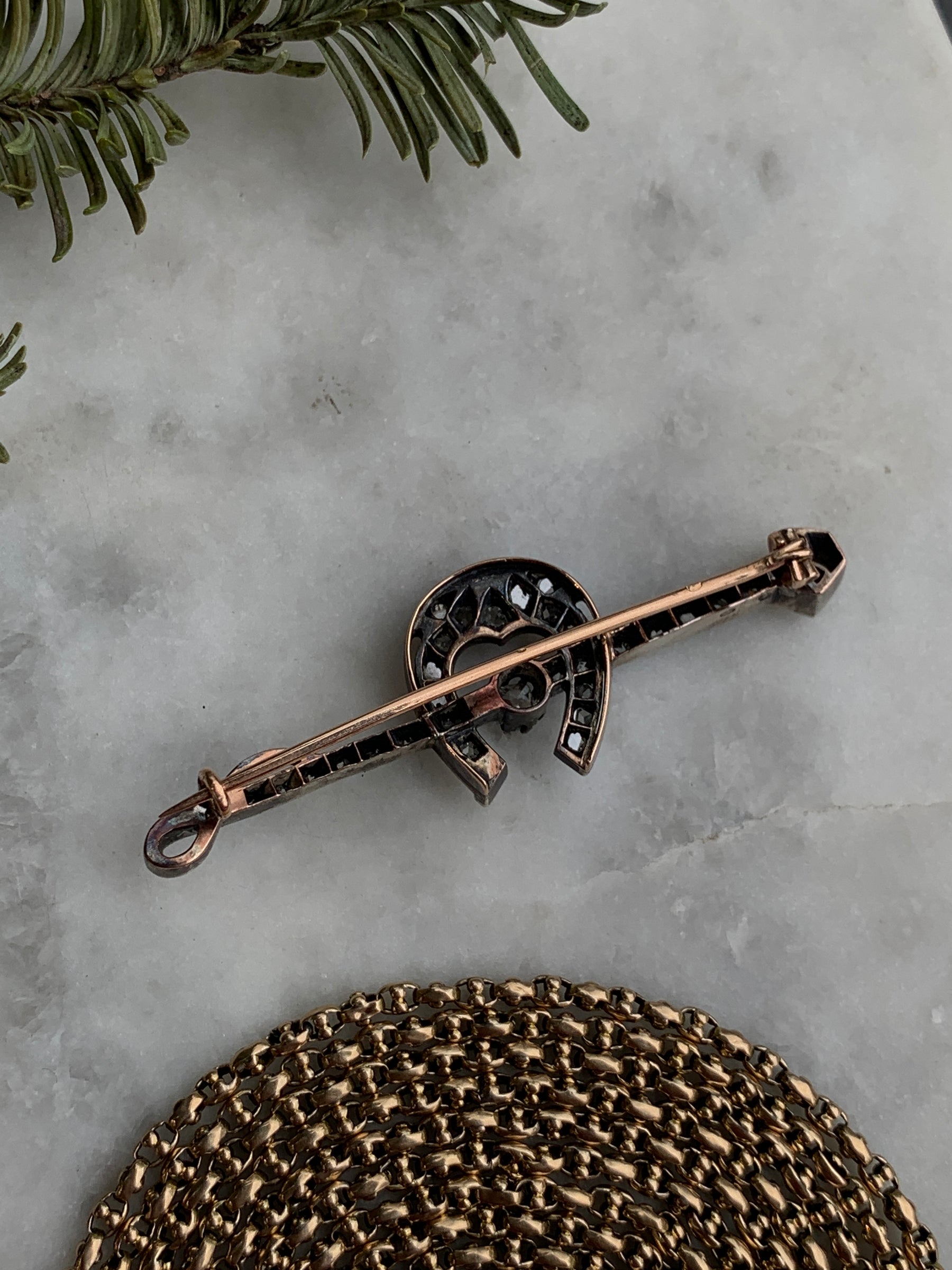 Superb 18k and Sterling French Hallmarked 19th Century Horseshoe Diamond Brooch