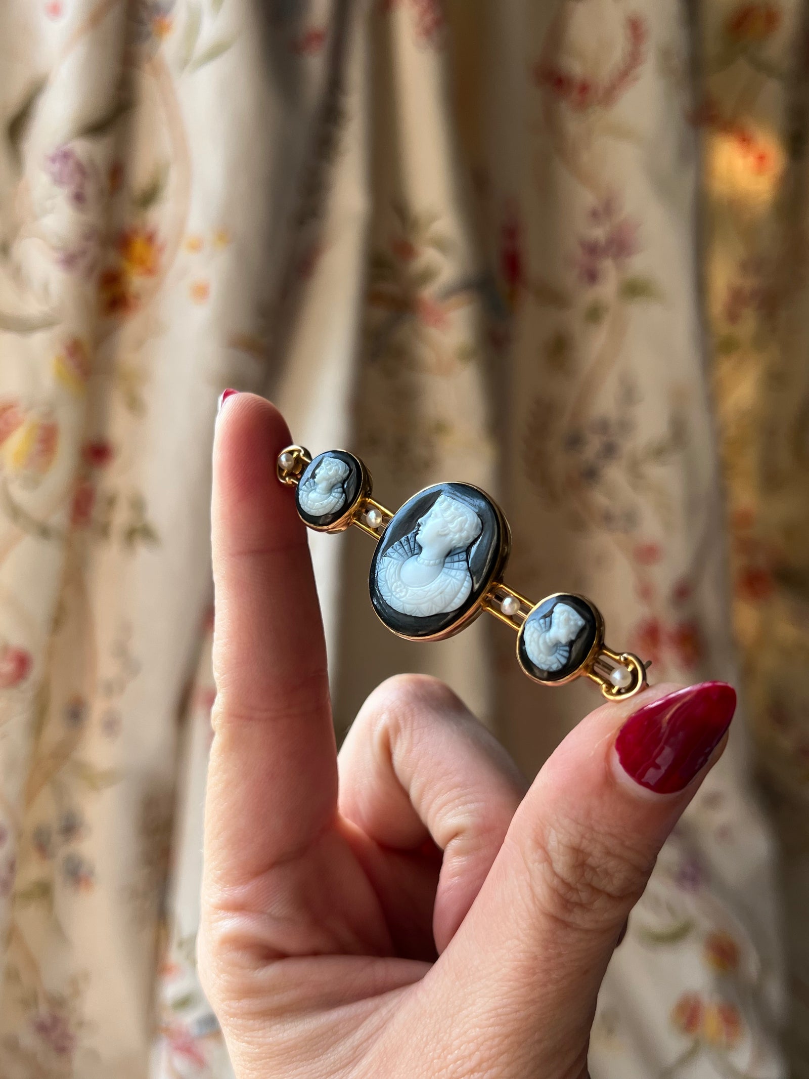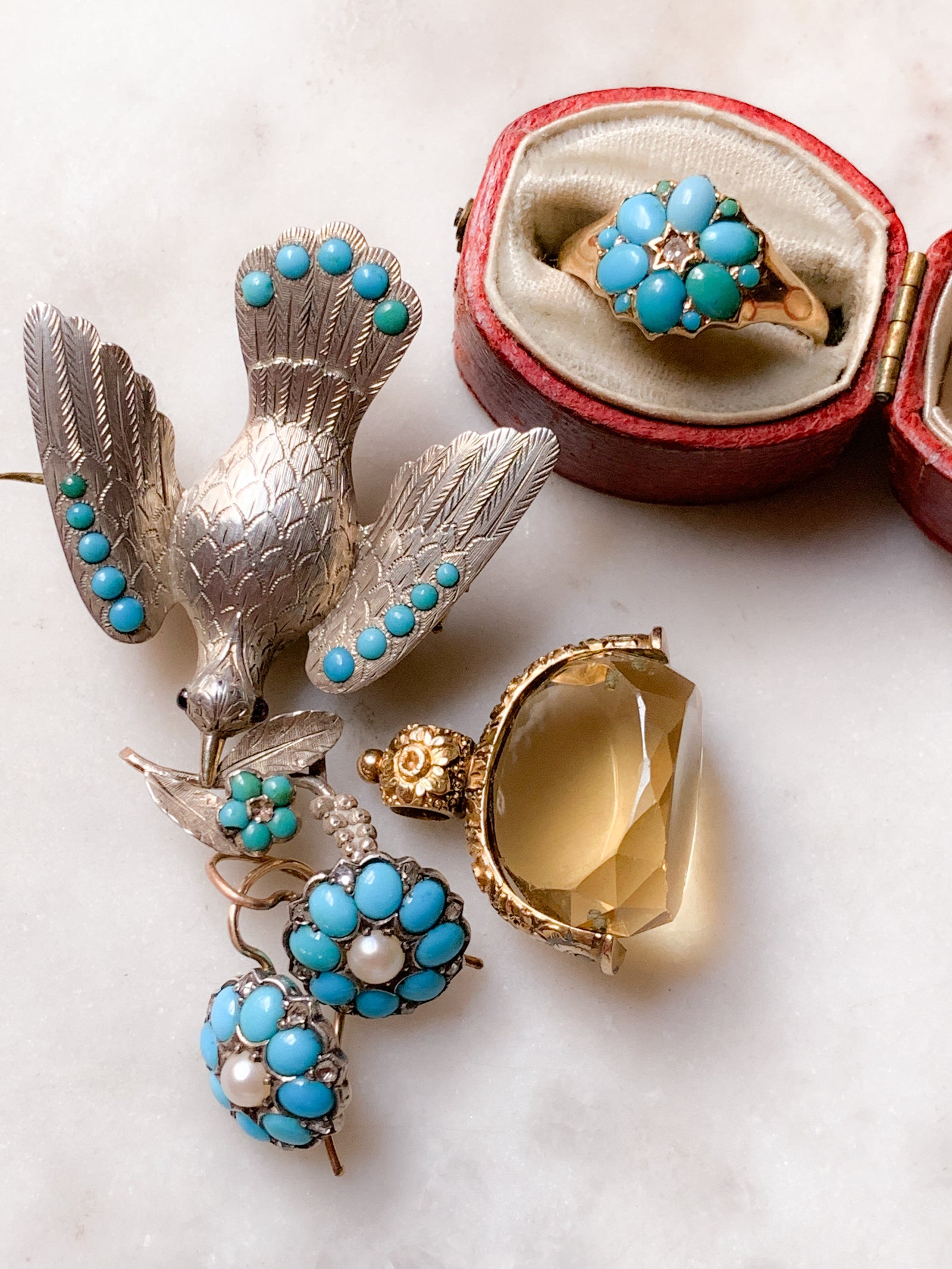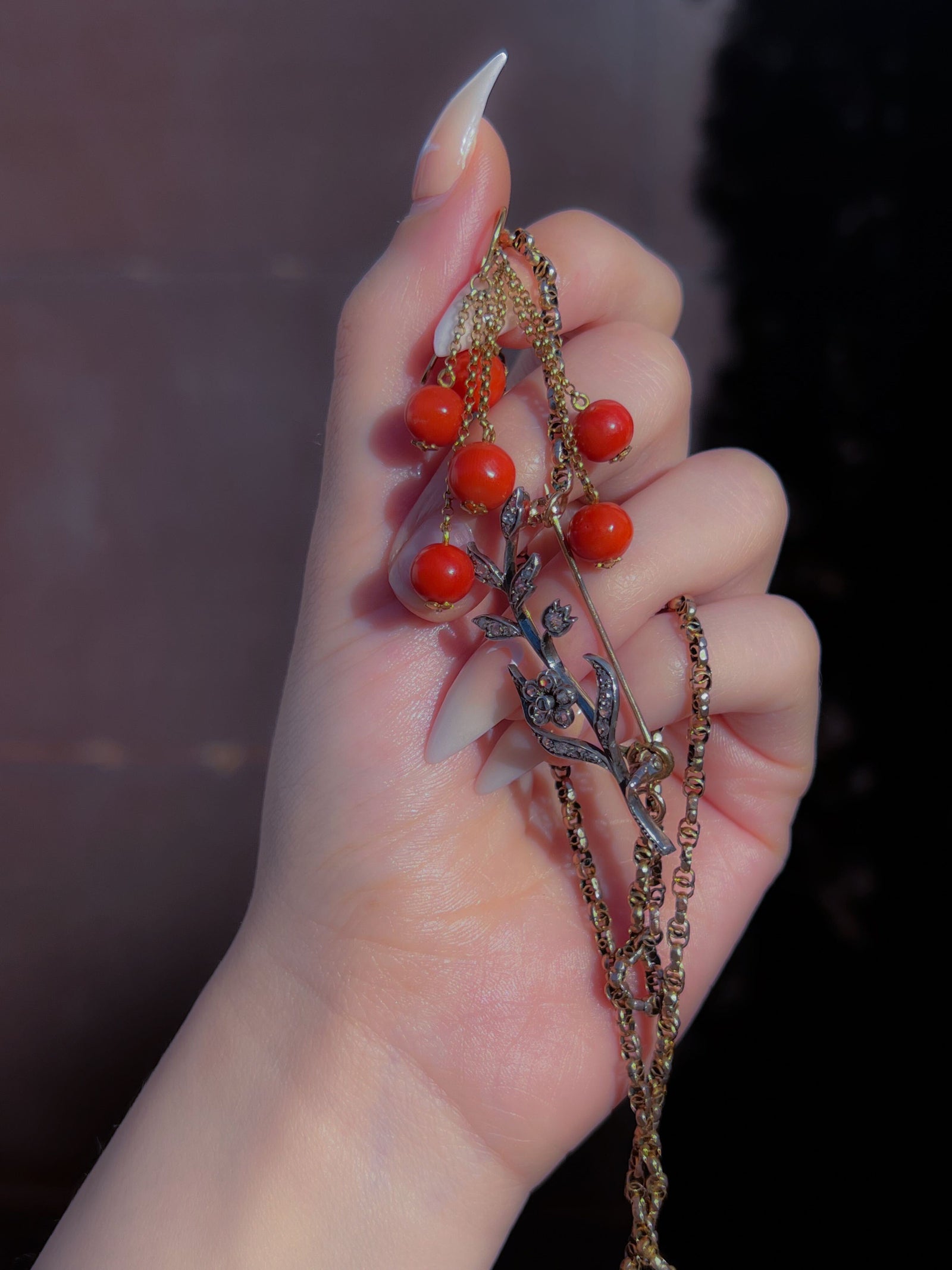 Today, the 𝔰𝔱. 𝔳𝔞𝔩𝔢𝔫𝔱𝔦𝔫𝔢 took aboard an addition to her usual complement of Serenas and Eloises, forming a pact with her historically inclined muses. Opals that burn under candlelight, a coral brooch, a golden asp for the wrist… even a carved black walnut with a hiden compartment, ready to cradle your most decadent perfume, travels among the original Curio Jewels.