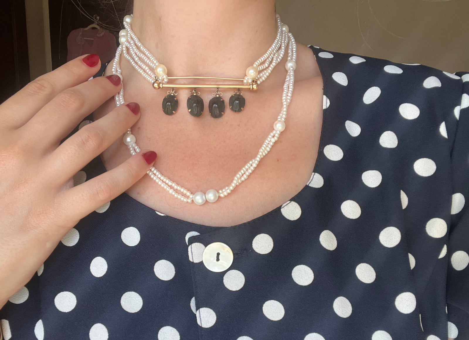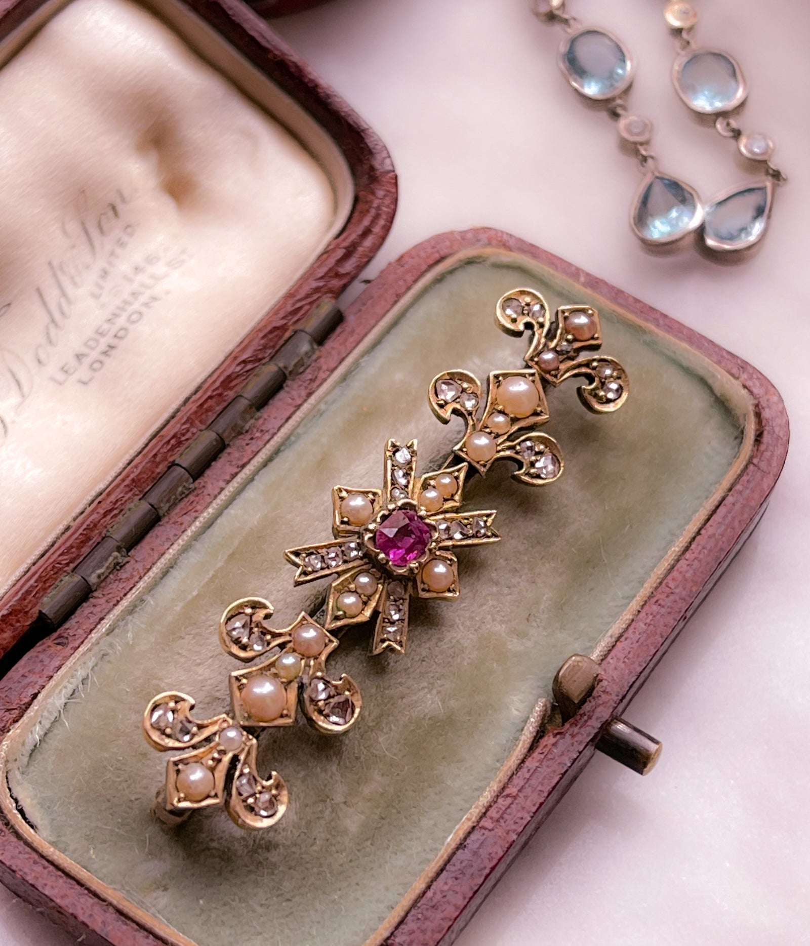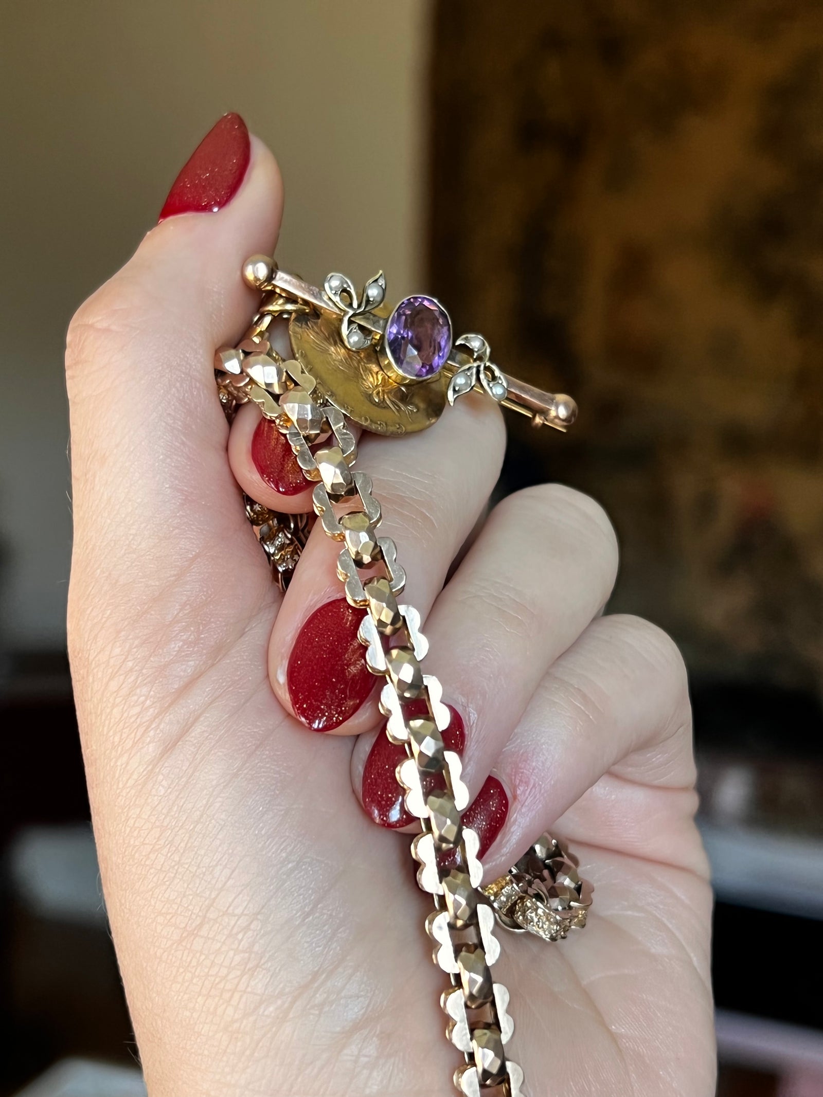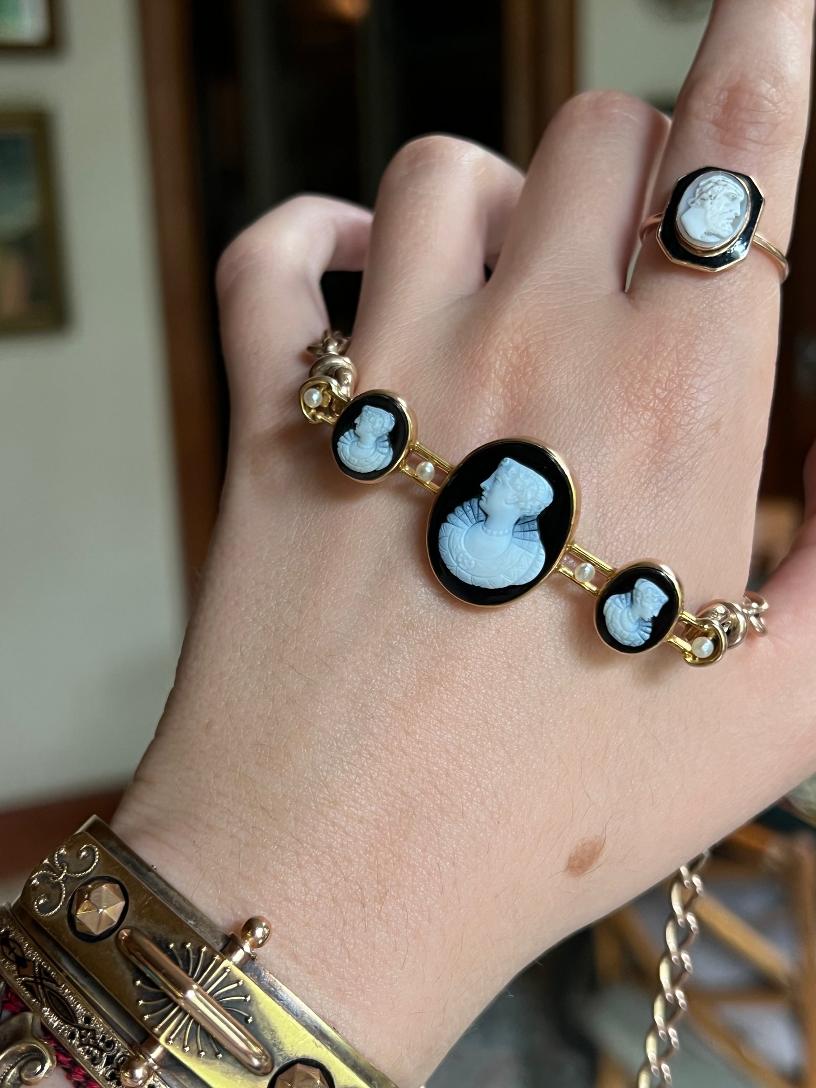 Today, the 𝔰𝔱. 𝔳𝔞𝔩𝔢𝔫𝔱𝔦𝔫𝔢 took aboard an addition to her usual complement of Serenas and Eloises, forming a pact with her historically inclined muses. Opals that burn under candlelight, a coral brooch, a golden asp for the wrist… even a carved black walnut with a hiden compartment, ready to cradle your most decadent perfume, travels among the original Curio Jewels.