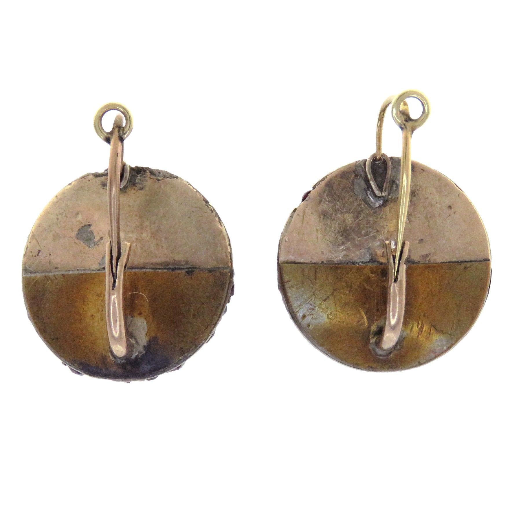 An exceptional pair of Victorian garnet cherry bomb earrings. With .75” diameter across the beautiful half globes, this dynamic pair will be a staple in any gothicly inclined jewelry wardrobe.