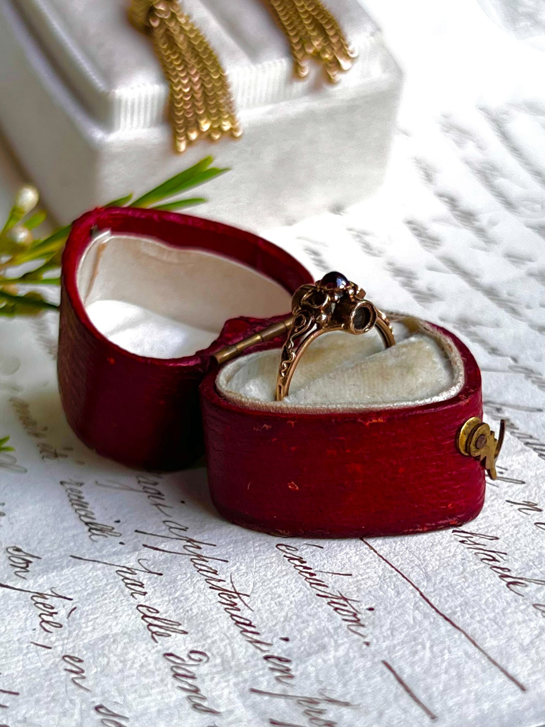 Garnet and 12k Picture Ring