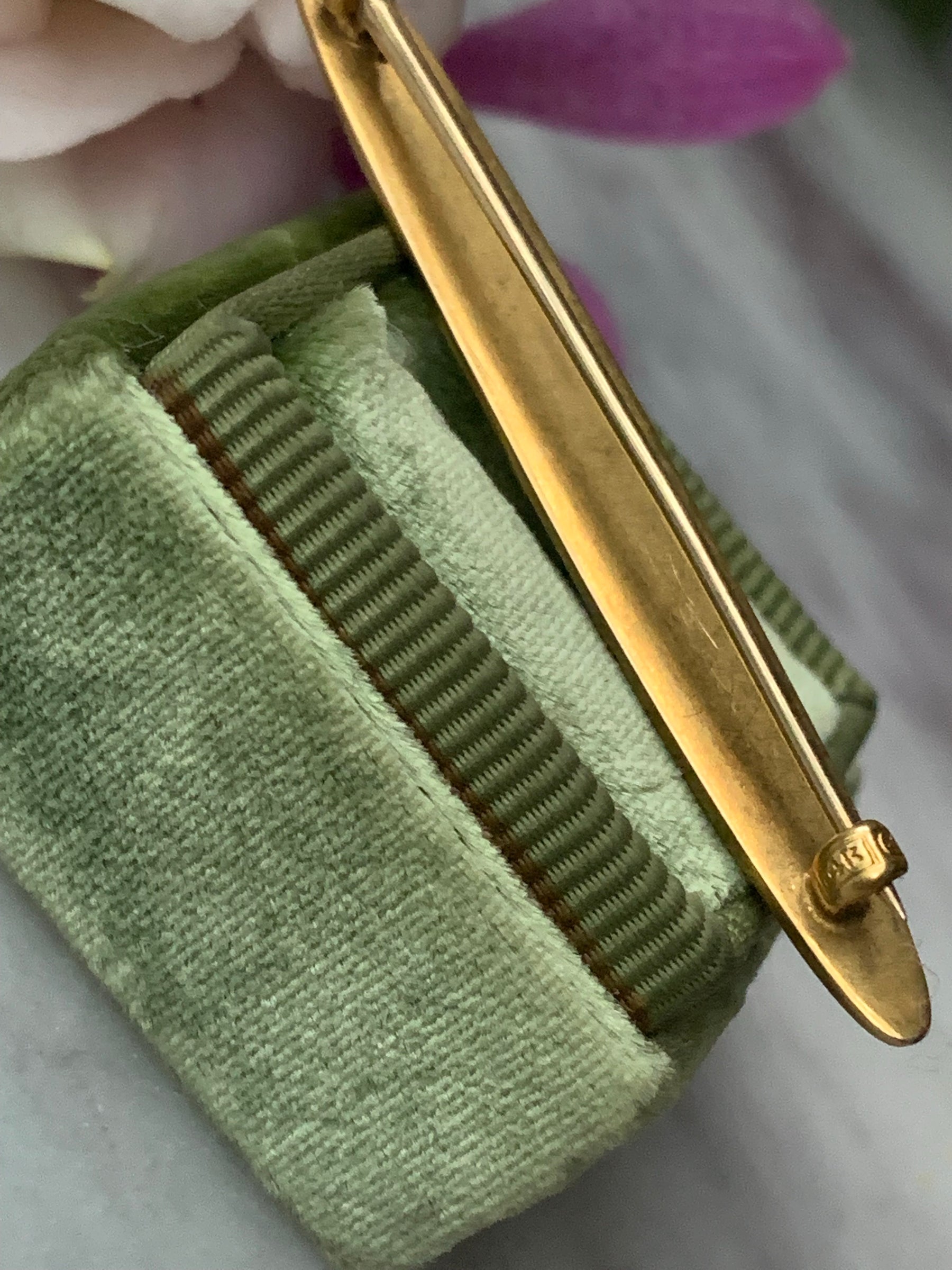 A wonderful art nouveau bar brooch, this special gold jewel transitions from the 19th into the 20th century. With her swirling lines and beautiful silhouette, she is decorated with pansies, intimating the message “pensée a moi,” ‘think of me.’ I could not imagine a more intimate token of affection.