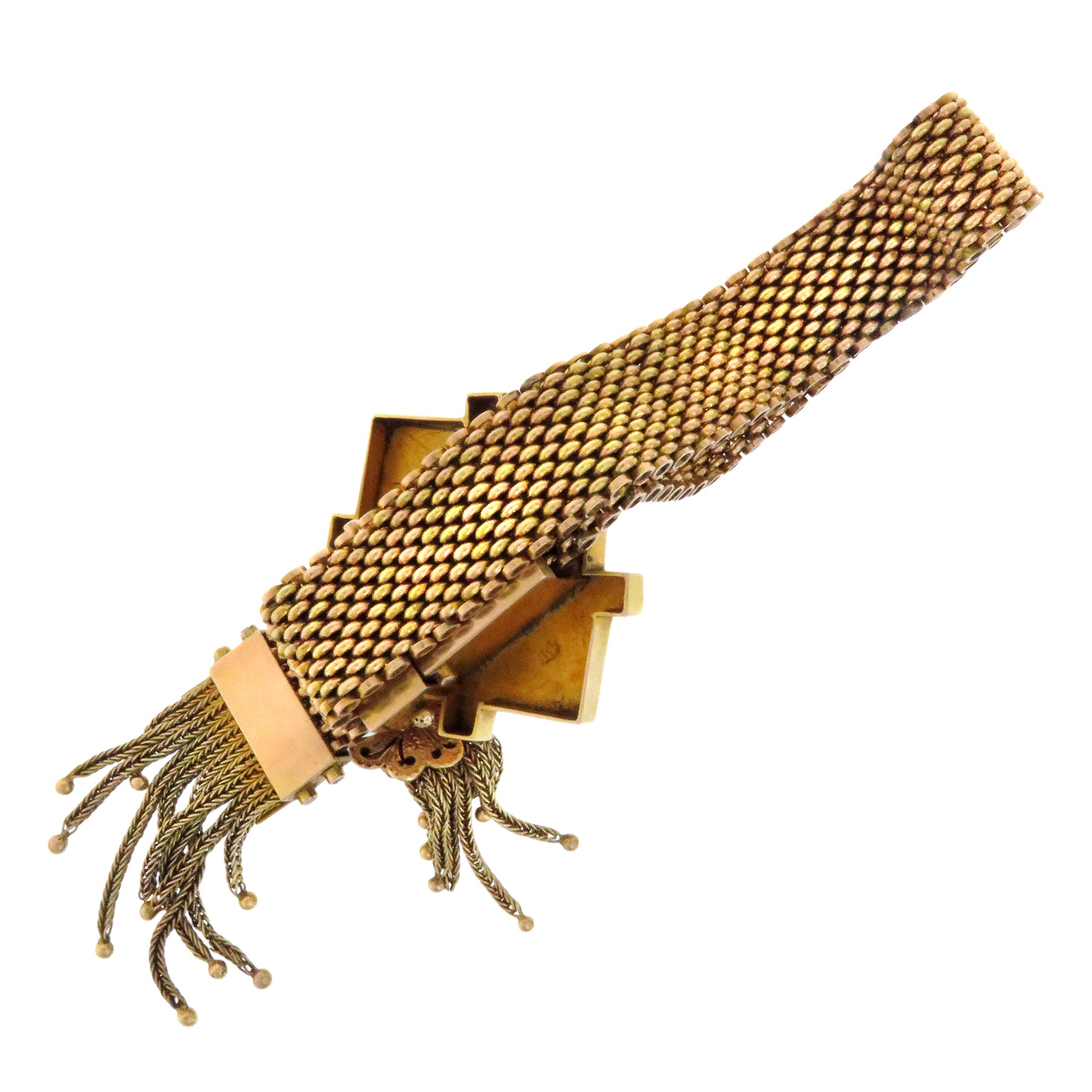 Condition: Excellent condition. Minor associated age wear. Two of the boules at the bottoms of the tassels have been lost to time but can be replaced by our jeweler upon request.