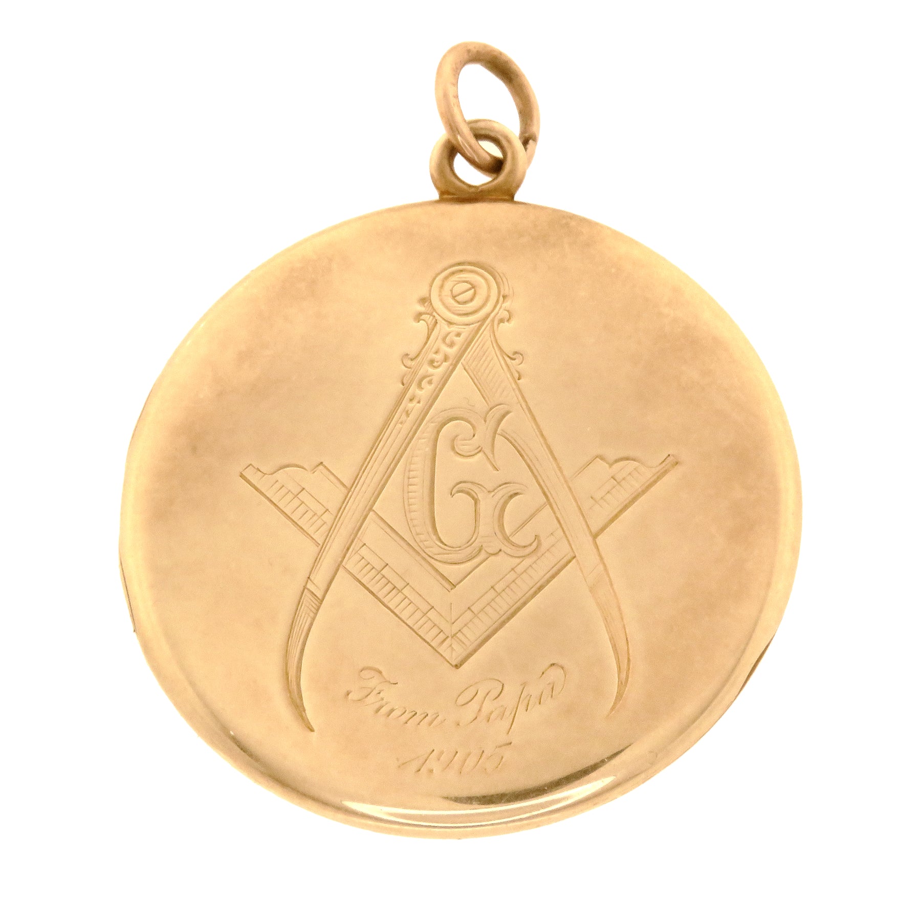 A very special 14k locket featuring a diamond in the center star. The reverse says "From Papa," so this was likely a gift from a father or grandfather to a son or grandson. The reverse also boasts a large "G" on the center, which is also known as a Freemason symbol.