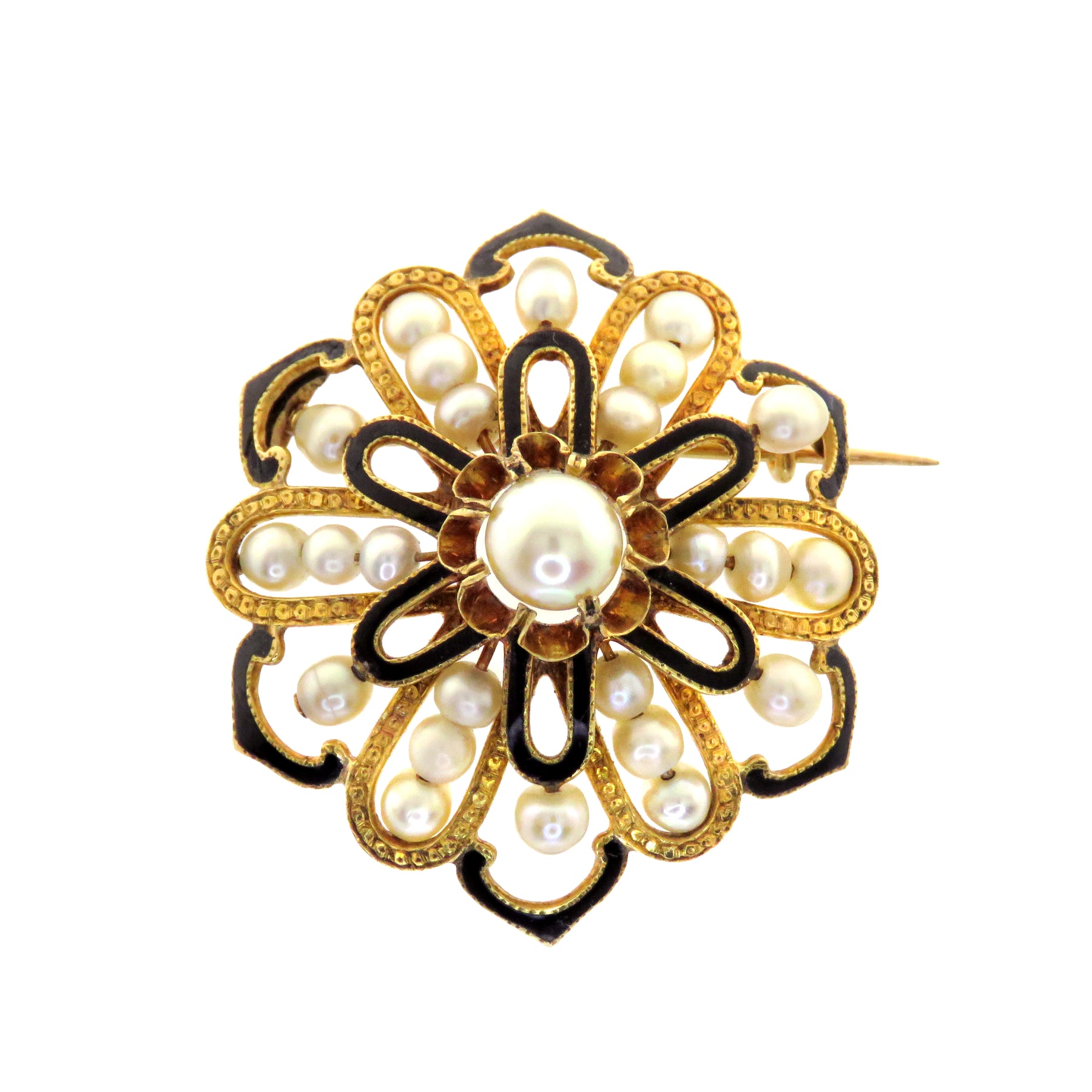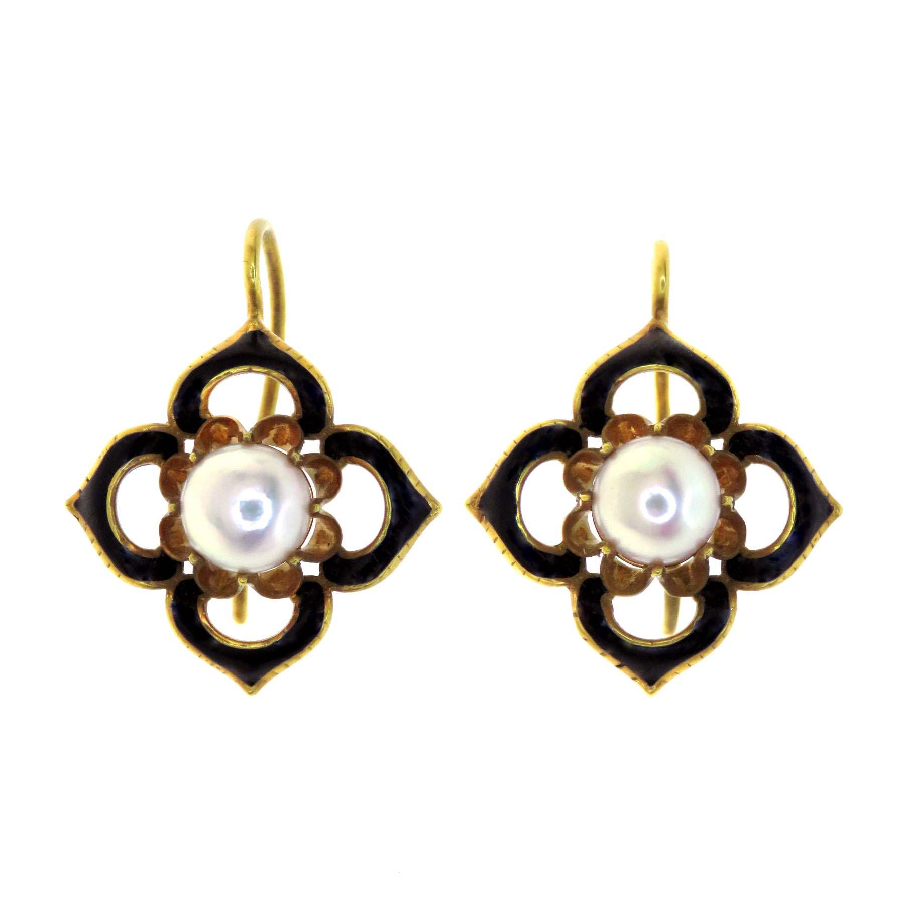 18ct gold, pearl, black enamel