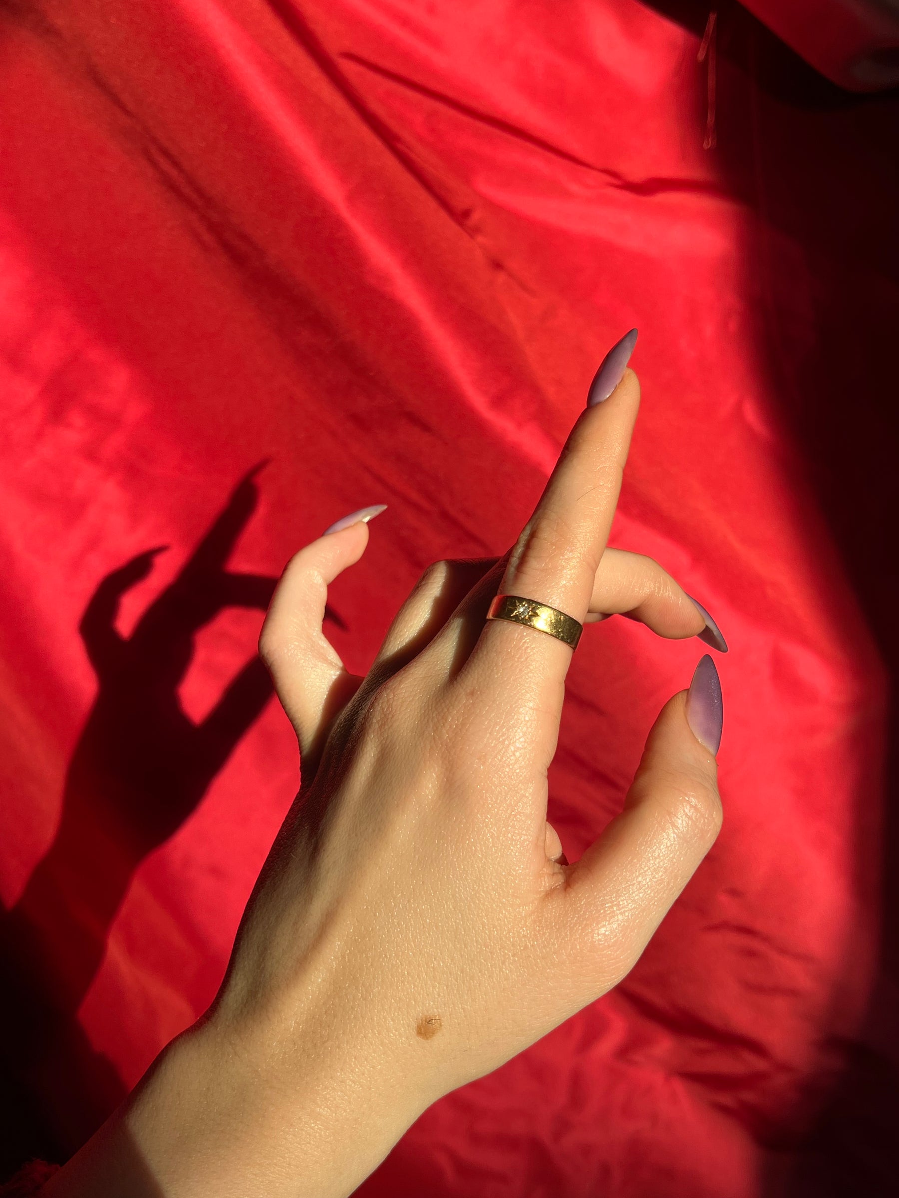 Crafted circa 1894 in a vibrant 18 carat gold, this beautiful star band has been a long-time staple in our collection. Most gold rings of this caliber average between 3-5 grams; but this one more than doubles that!