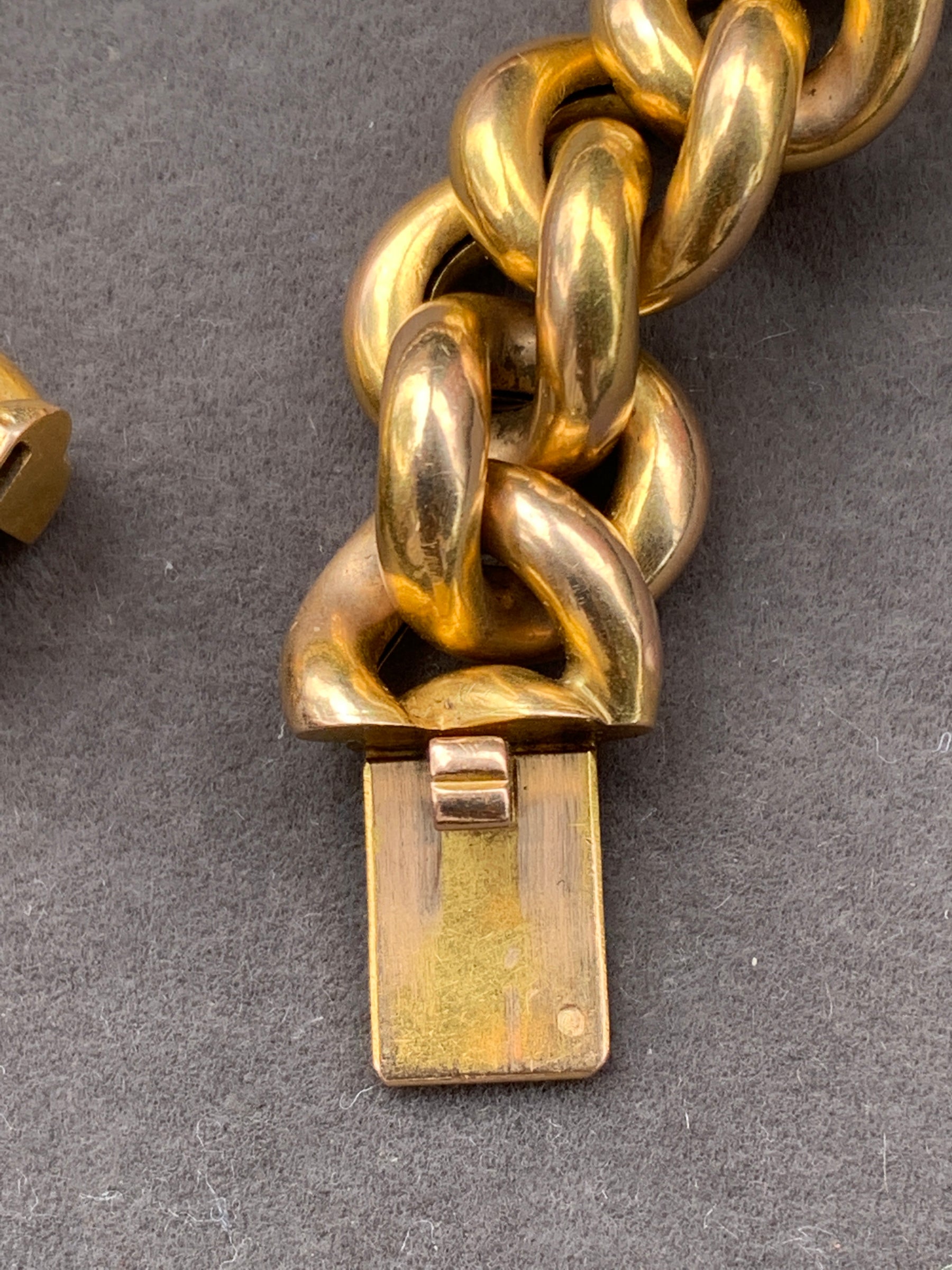 A superb 18ct French cuban link bracelet. One of the sleekest and most timeless designs, this outstanding bracelet allows a peek into the past at a vision of the future, reminding us that some styles are so ergonomic they are eternal. When I came across this bracelet, I was delighted at the 19th century French construction- for it could have really been made at any time between 1860-2021. The Cuban has and always will be an iconic look.