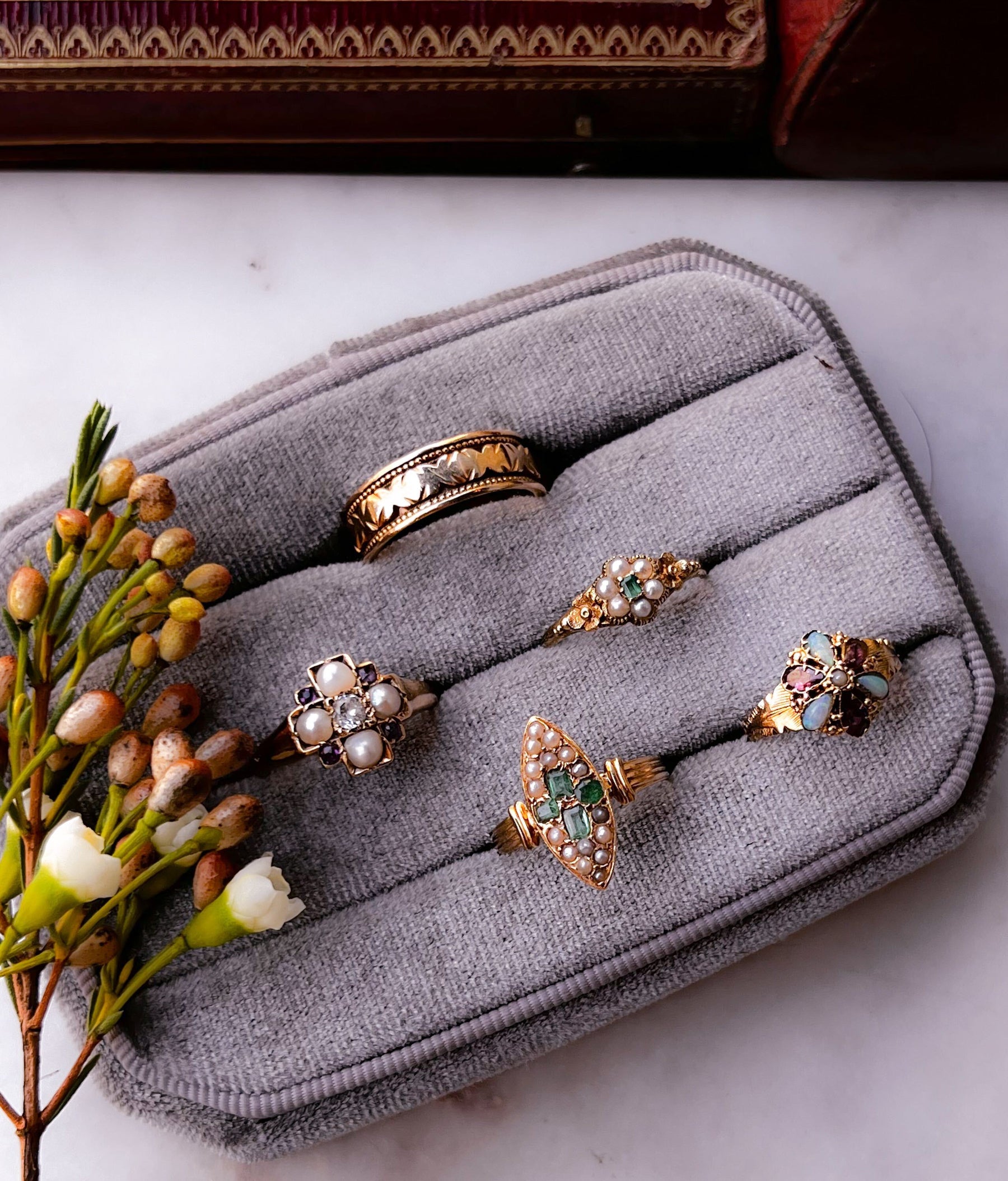 Please view and inspect any photos closely. We endeavor to fully disclose all condition information clearly and concisely, however, please note that what qualifies as excellent condition for historical jewelry differs from modern and contemporary pieces; please take the age of the piece into account when examining the piece. Minor age wear is typical and to be expected for antique and vintage jewelry. Unless otherwise stated, gemstones have not been officially graded for color, clarity, or treatment by GIA; any information provided is our own educated, professional assessment.