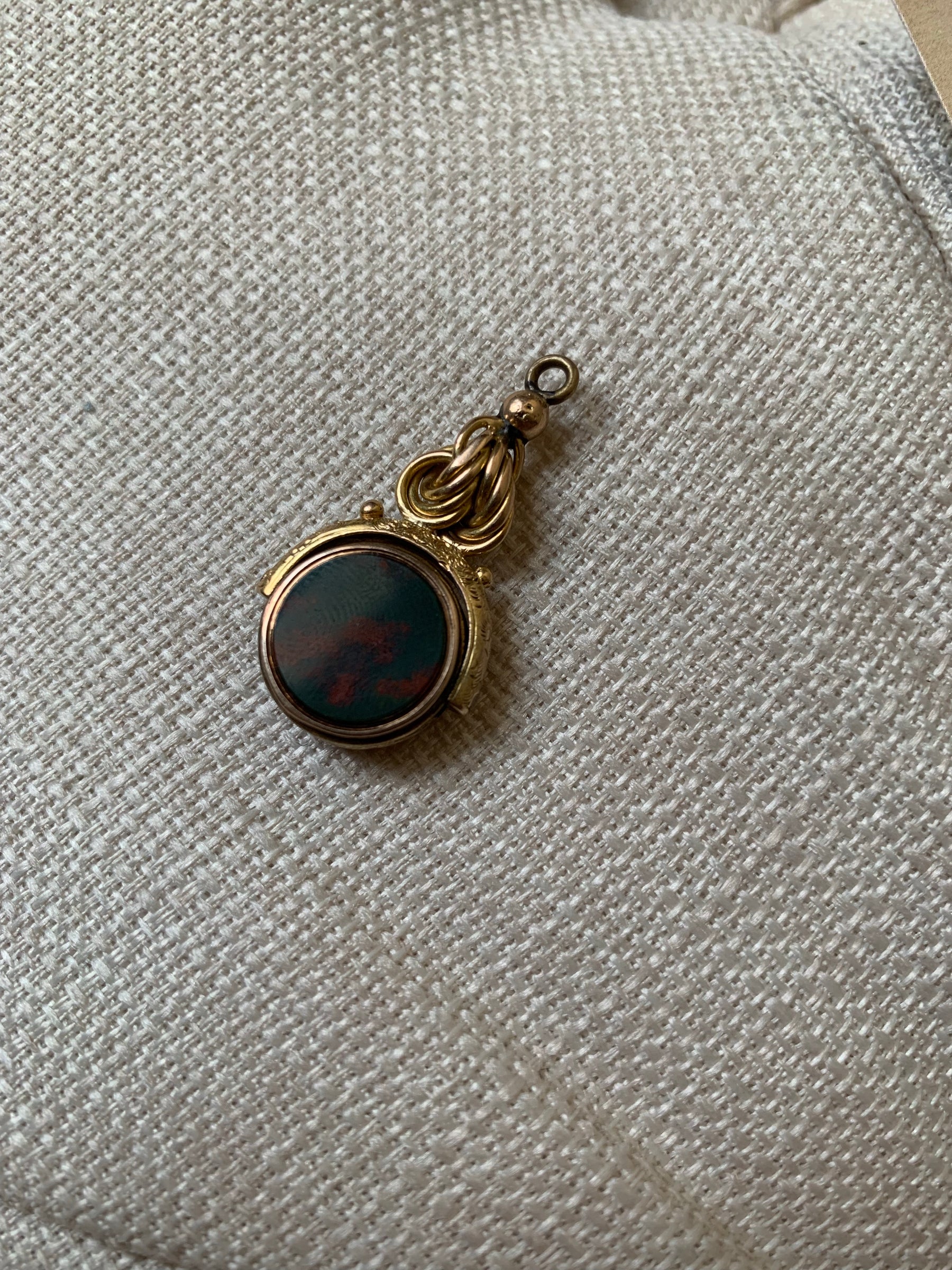 Materials and Features: 9k gold, sardonyx, bloodstone