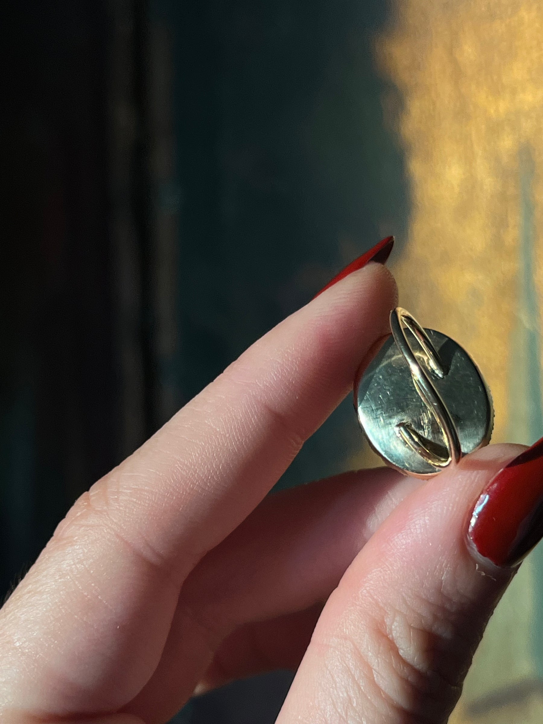 This piece is a excellent conversion piece, originating as a brooch. The band is delicate, creating a sweet silhouette. As it is a memorial piece, there is strong sentimental value, especially with the intimate inclusion of the hair lock. A wonderful addition to any antique jewelry collection!
