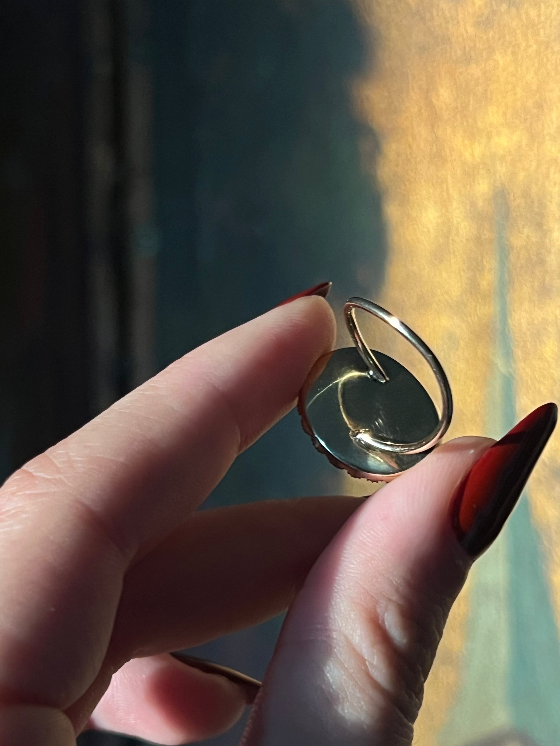 Measurements: Size 7.5 (can be resized); Ring top is 18cm at widest point, 3.94 g