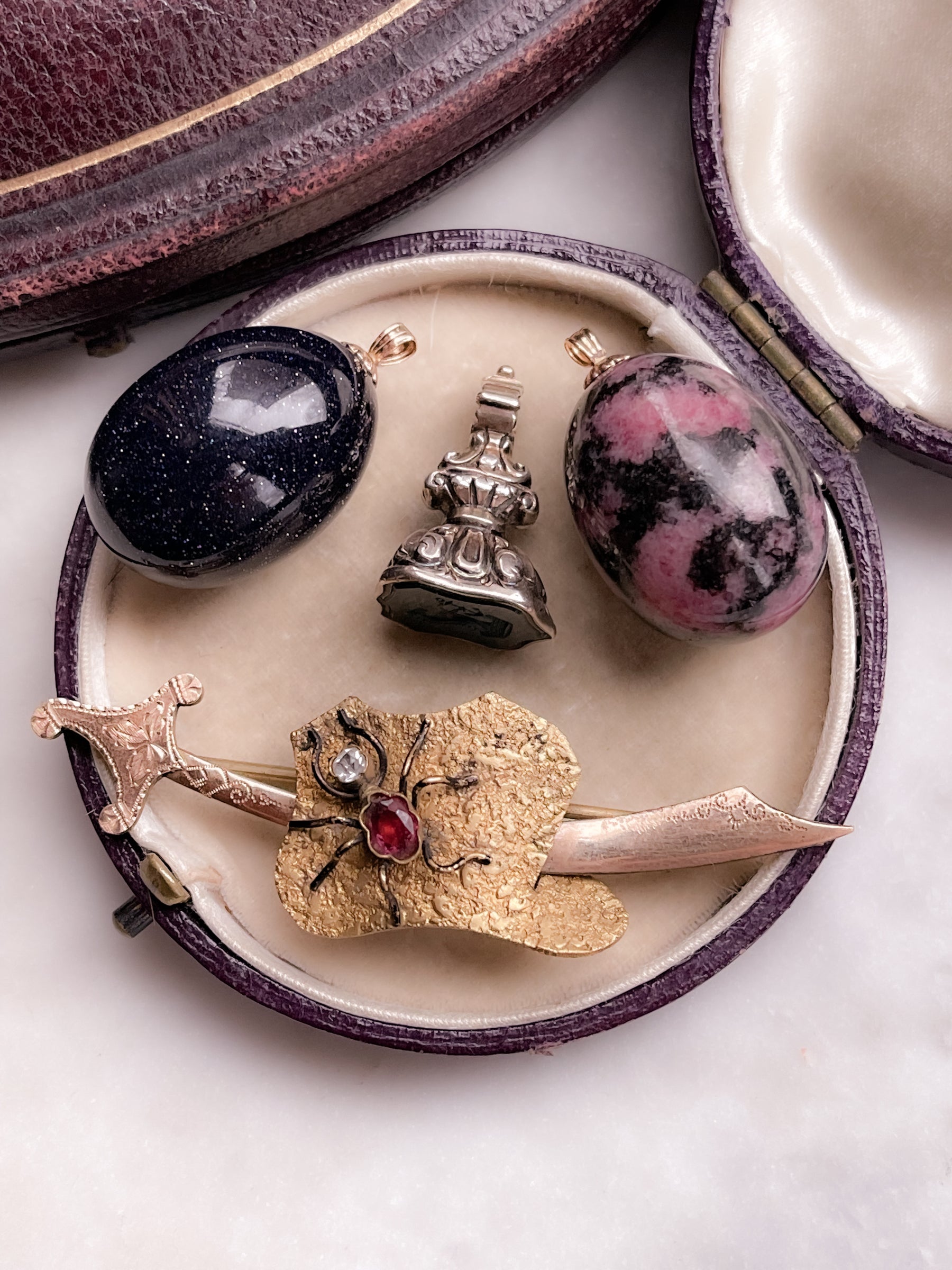 Please view and inspect any photos closely. We endeavor to fully disclose all condition information clearly and concisely, however, please note that what qualifies as excellent condition for historical jewelry differs from modern and contemporary pieces; please take the age of the piece into account when examining the piece. Minor age wear is typical and to be expected for antique and vintage jewelry. Unless otherwise stated, gemstones have not been officially graded for color, clarity, or treatment by GIA; any information provided is our own educated, professional assessment.