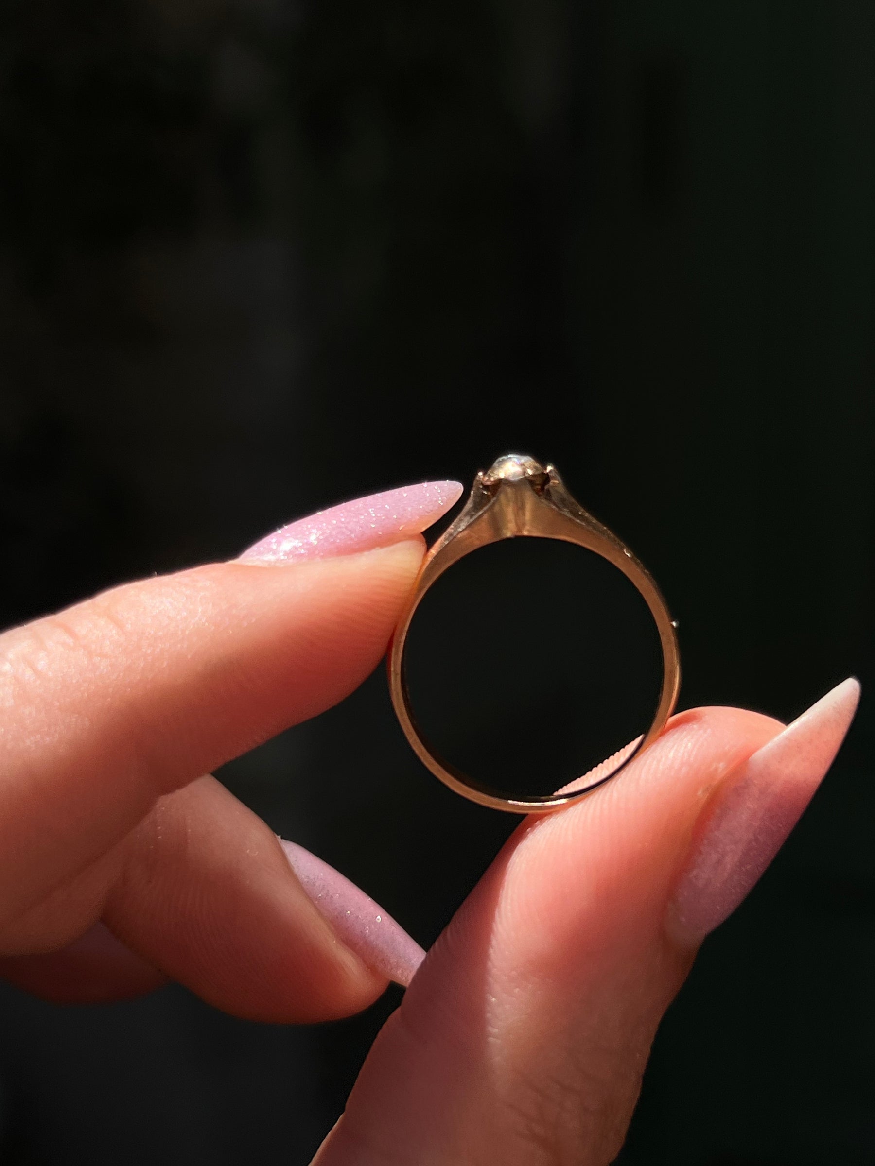 Adding to the sweetness of this ring is the delicious rosy pink hue to the gold, which adds a romantic flair to the silhouette. This pinkish gold was rare, and highly coveted in antique French jewelry. Today, a ring of this design is still highly sought after, making this a truly unique and valuable piece.
