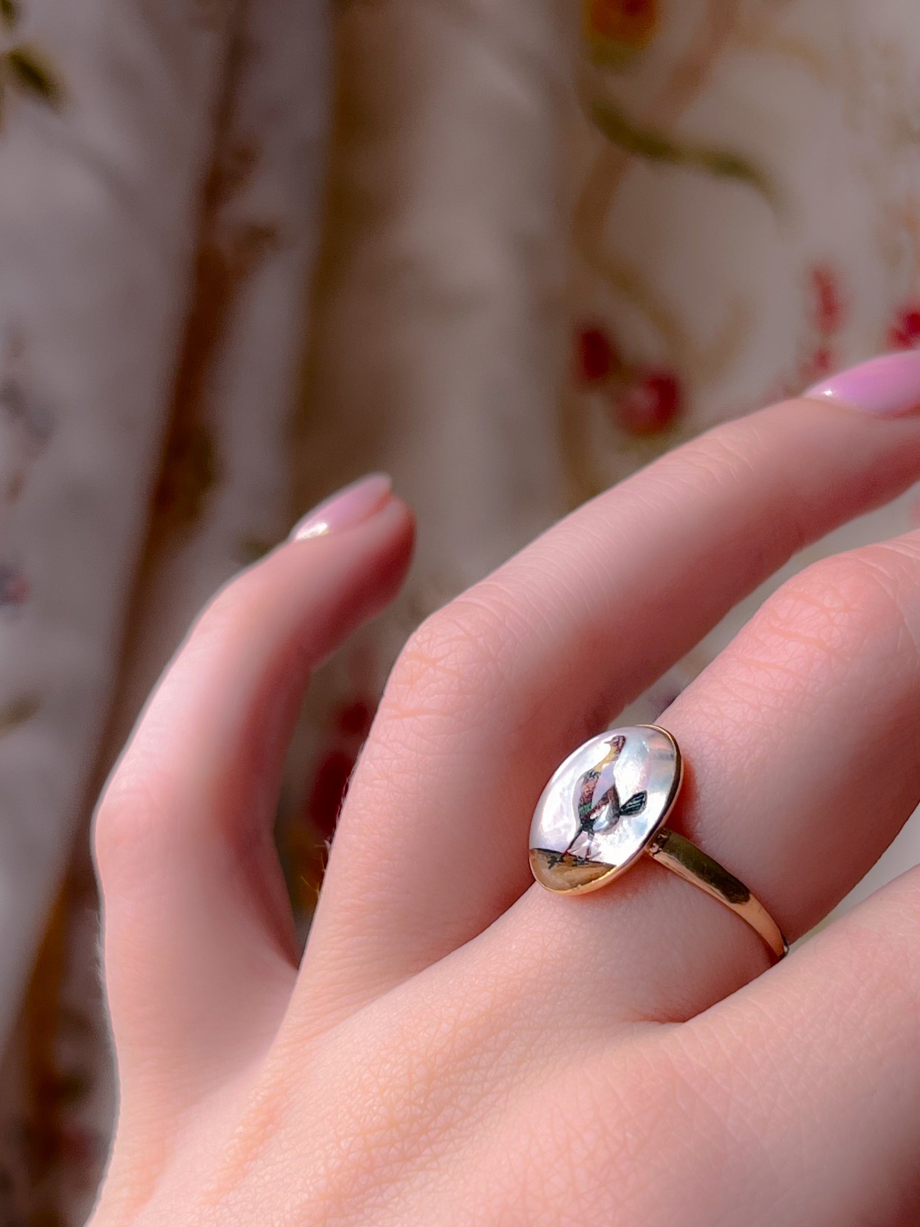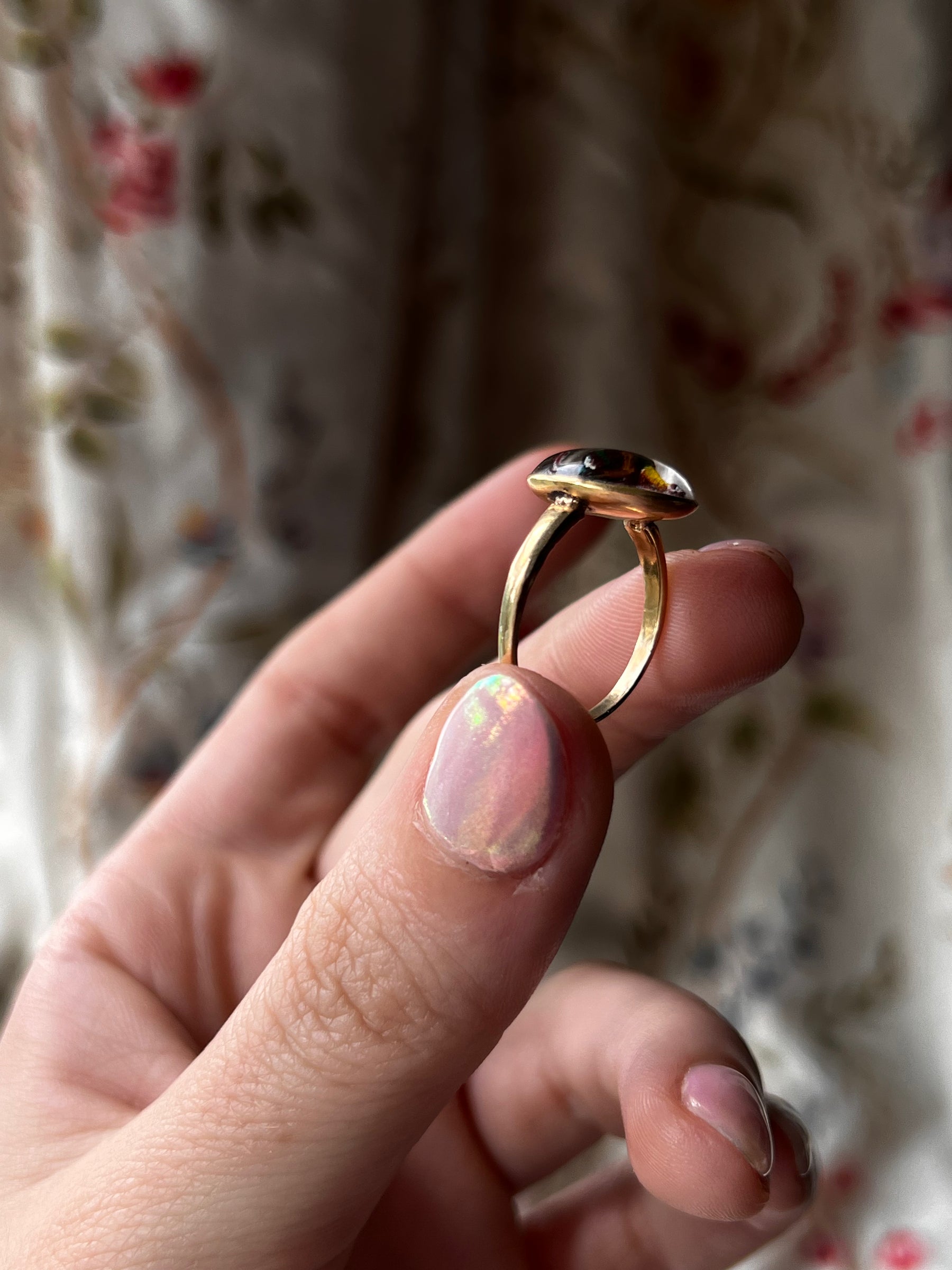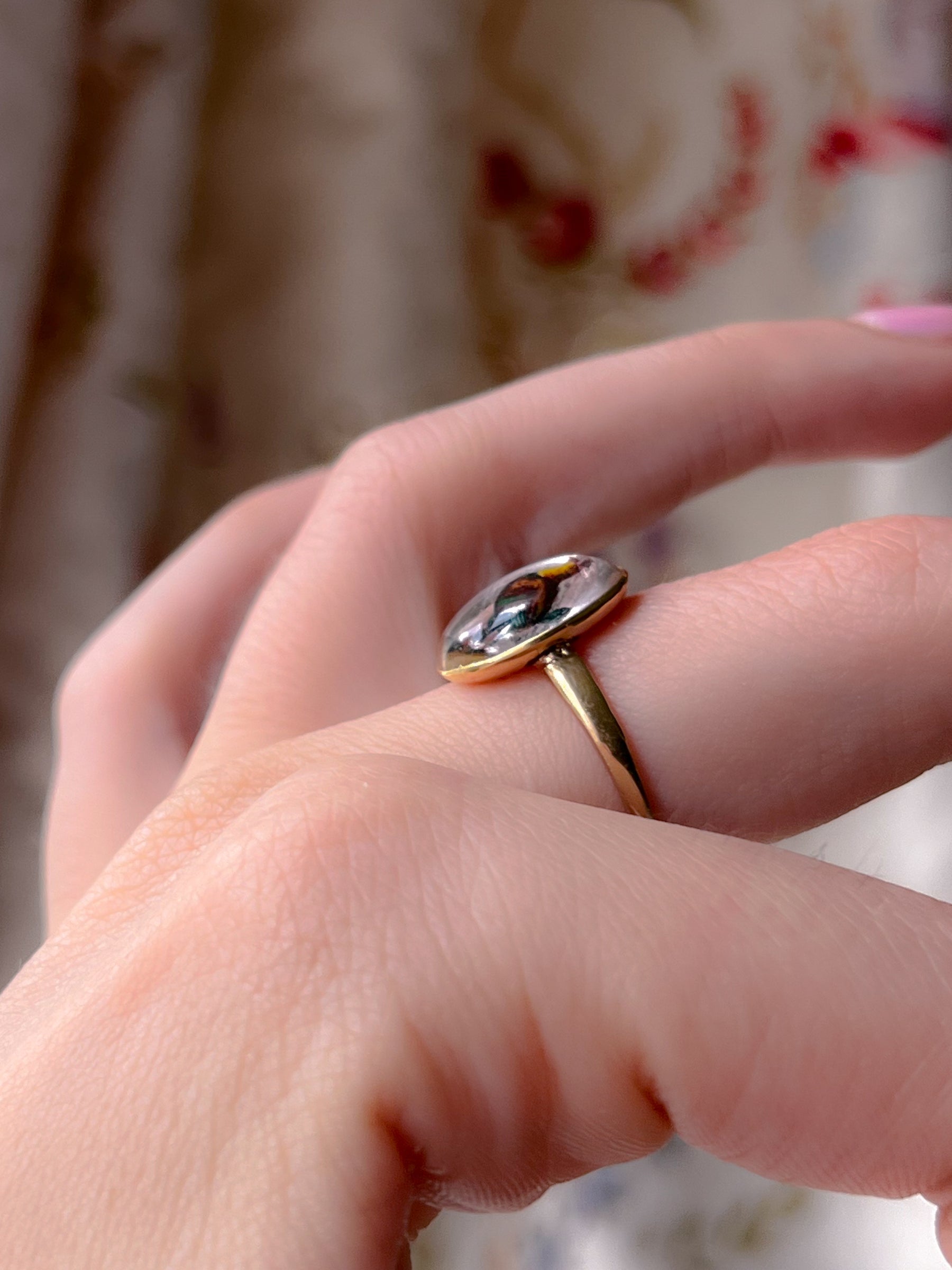 Wonderfully refashioned, likely from a cufflink into a ring, this example is neatly marked with a Victorian cartouche hallmark on the reverse. This Essex Crystal dates to the 1890’s when hunting and animal jewels were rudimentary equipage to the modern wardrobe.