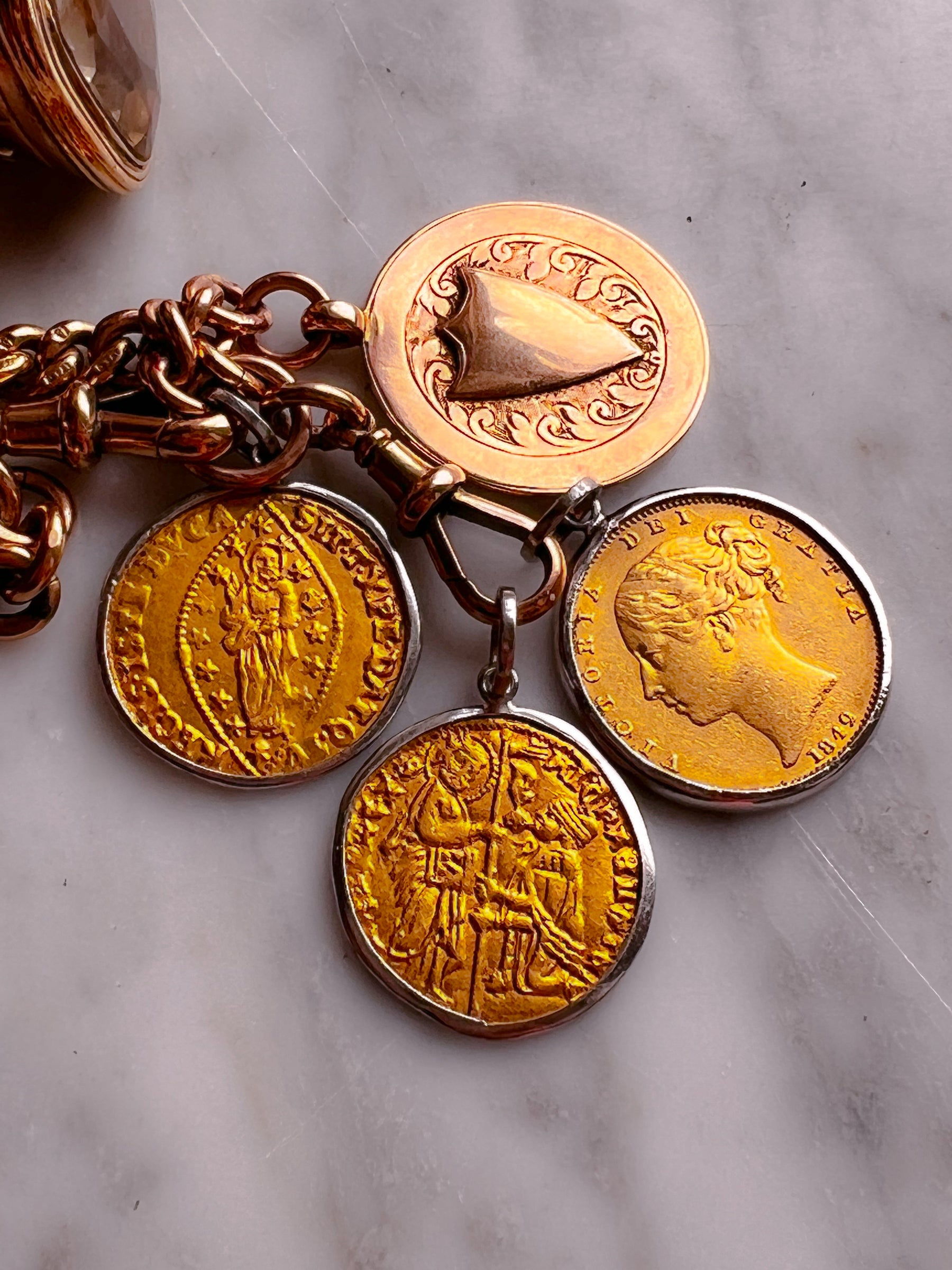 Avery rare coin from somewhere within the 8th-11th century, this extremely rare find is one of two early Byzantine coins set in a hand finished Curio Covet bezel from one of our most recent treasure hunts. Sybolizing a new chapter in Curio finds, this wonderful 22ct coin is a remarkable find for the lover of incredible quality.