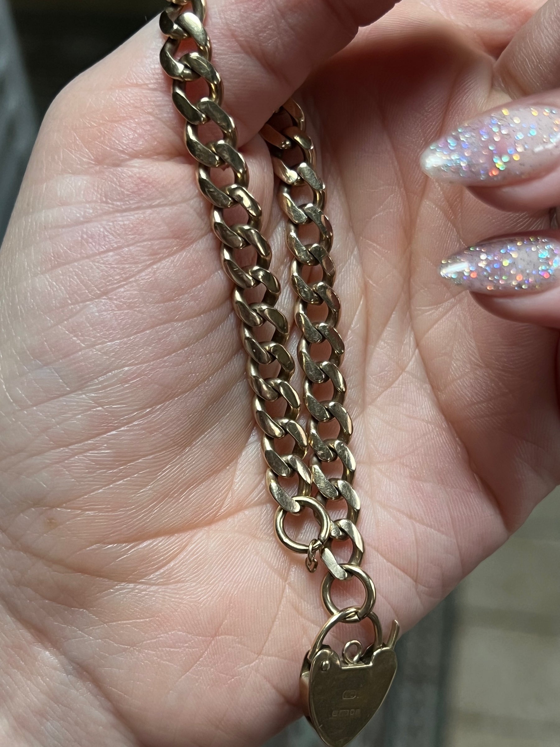 A stunning, extremely rare to find padlock bracelet in 9ct with a beautiful chunky curb link chain, fully functioning and a perfect length at 7". Attach to chains, bracelets, use as a lengthening element, and even attach other jewels to the top lock.