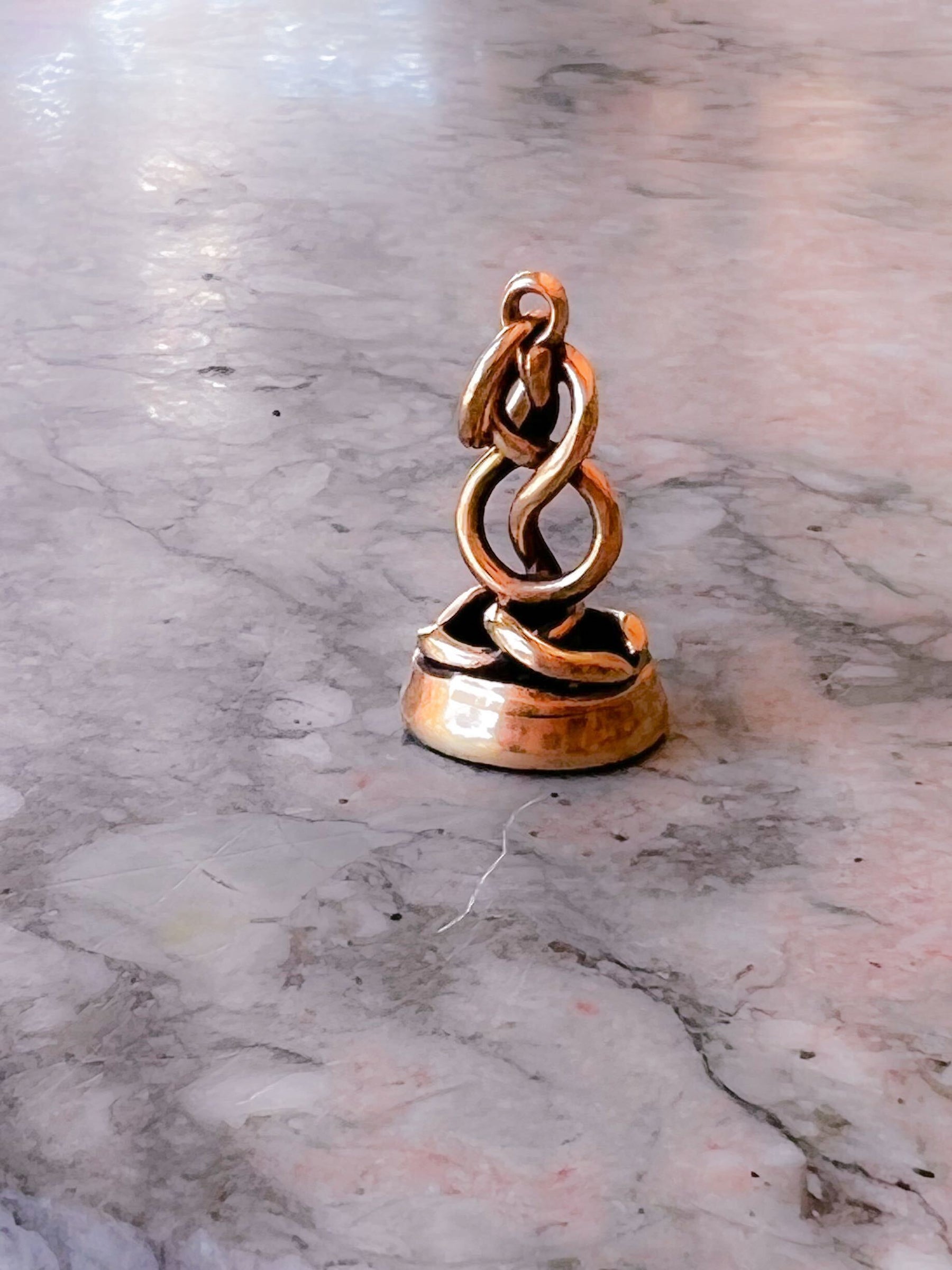An extremely rare small-scale fob of Royal lineage, the Order of the Garter was founded in the 14th century and has remained an important part of English Nobility since. This fob with two twisted snakes is a subtle but compelling example of the early 19th century.